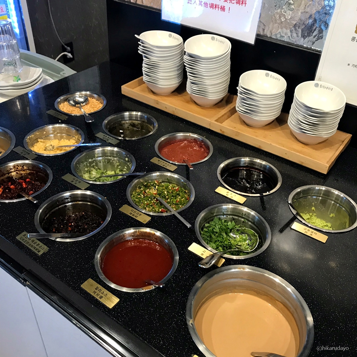소스는 원하는 대로 퍼올수 있고 한국인에게 익숙한 칠리소스부터, 마장 소스, 다진 고추, 고추냉이 등