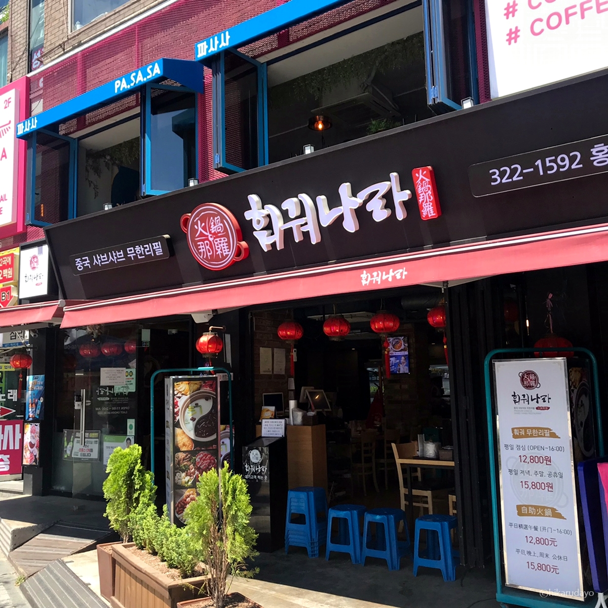 양이 많은친구와 함께 방문한 터라, 홍대 무한리필 맛집 찾다가 양 많을거 같아서 뜨끈한국물이 일품이라는 홍대명물 훠궈 먹고왔다.