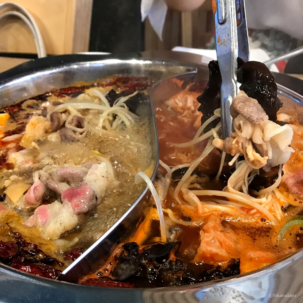 백탕은 아무래도 한국의 곰탕맛이 연상되는 조금은 심심한 맛이고, 어른들은 좋아한다고 해도 아무래도 나는 마라맛 가득한 매운맛이 좋지. 그리고 토마토맛은 맵지 않지만 빨갛고 맛있다.