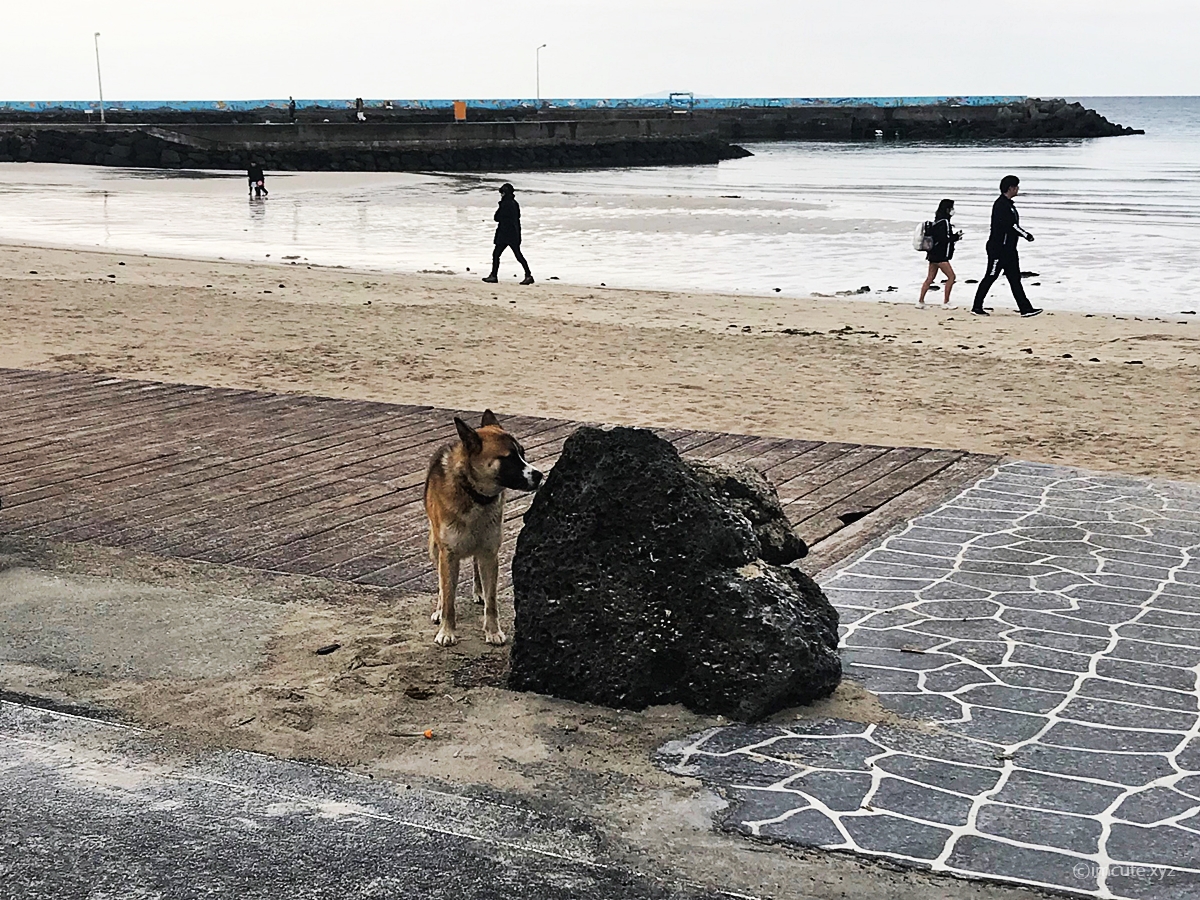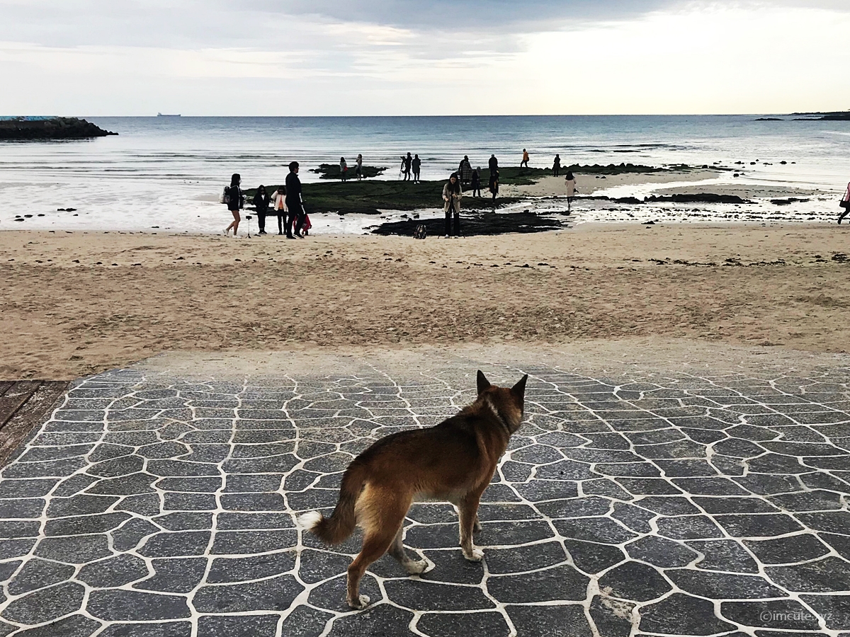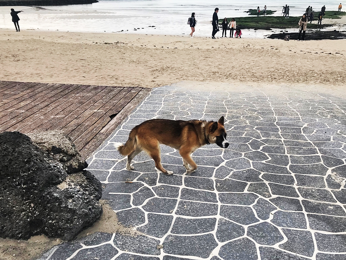 근데.... 제주 월정리 카페 겸 기념품 샵 제주리퍼블릭에서.. 또 다른 예기치 못한 손님을 마주하였습니다. 그 이름은 누렁이!!!?? 아마도 제주도 산 들개인것 같았..는데 다시보니까 목걸이가 있는거 같네요 사람을 공격하거나 하진 않았고요, 제가 지나가니까 되려 자리를 피하더라고요. 그리고, 개가 물에 들어가서 막 헤엄도 치고 다시 들어오고 한답니다. 저는 <개헤엄>이라는 것을 난생 처음 보았습니다!!