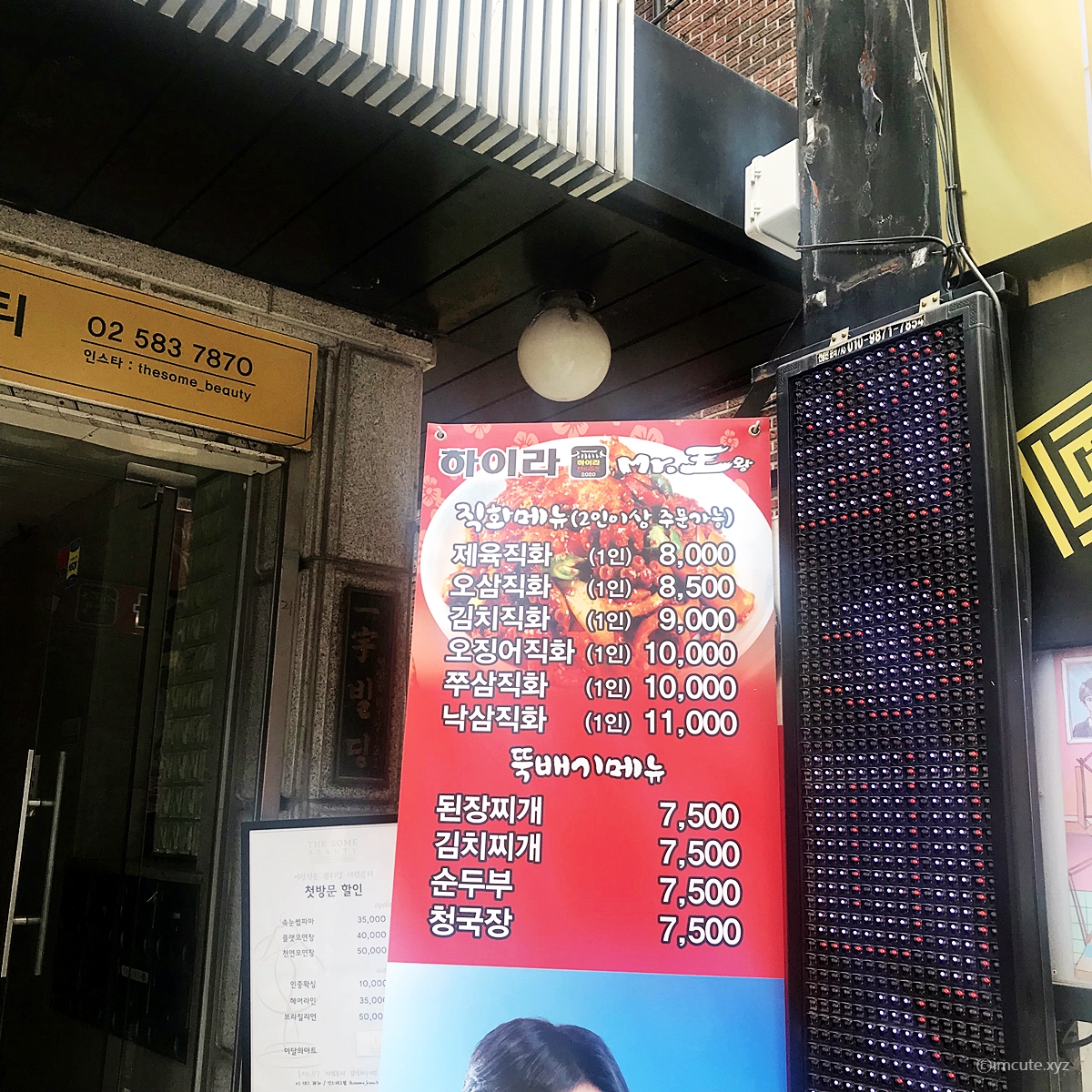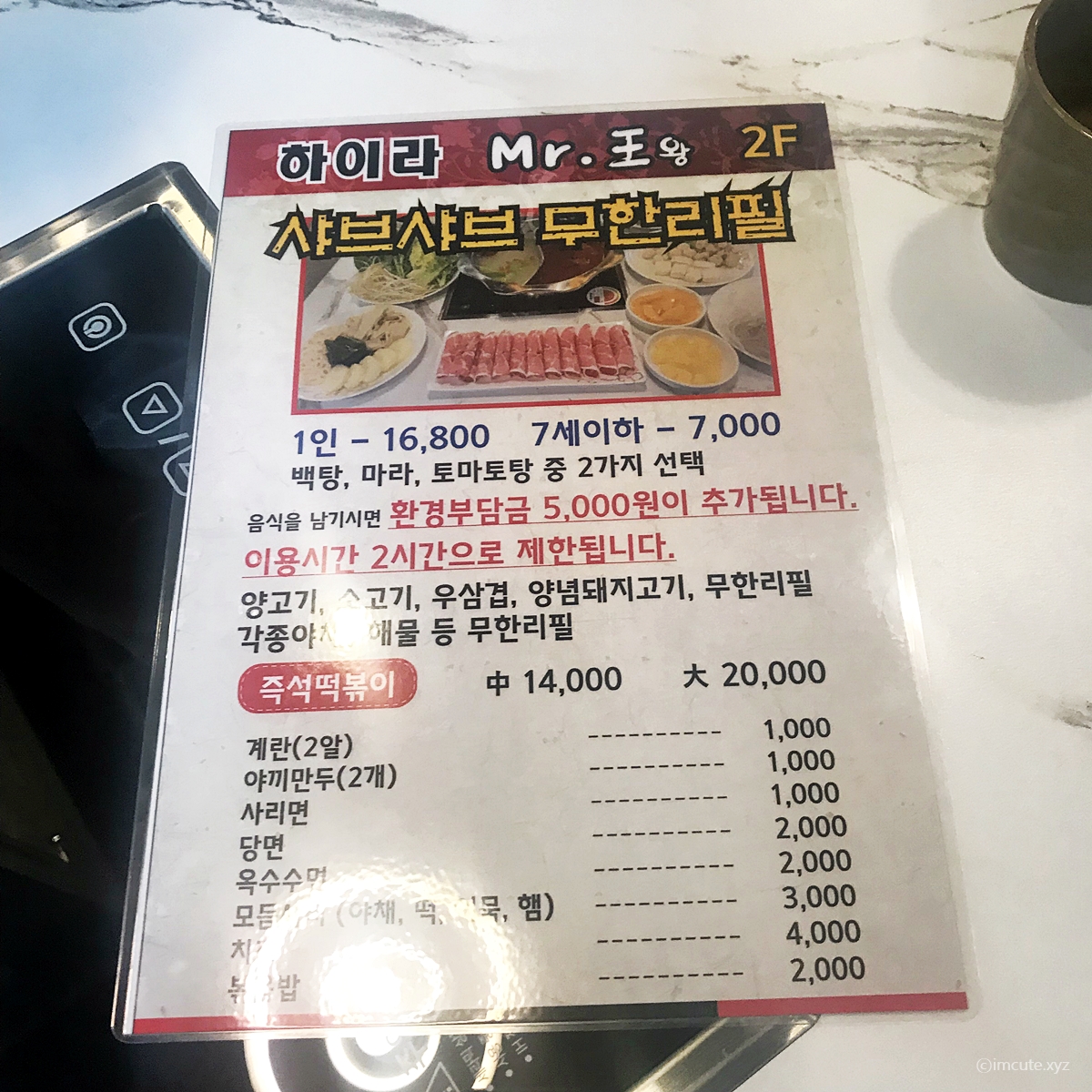 가게이름이 좀 독특한데요 하이라 미스터왕왕이라는 느낌부터 뭔가 중국가게인가 했는데 즉석떡볶이랑 훠궈까지 취급하고 있고 밥집도 겸하고 있더라고요. 독특하죠? 저도 좀 가서 놀랐습니다.