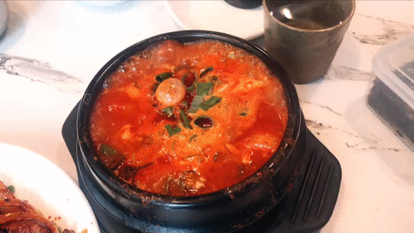 재료를 아낌없이 넣었는데요. 통으로 순두부가 들어있고 또 애호박이라든가 각종 재료가 푸짐히 들어있어서 그냥 밥집이긴 하지만 아주 후하게 잘먹었다 싶으실거에요. 저도 집에 뚝배기나 하나 사볼까 해요. 같은것을 끓여도 오래오래 잔열이 남아서 그런지 그맛이 더해지더라고요.
