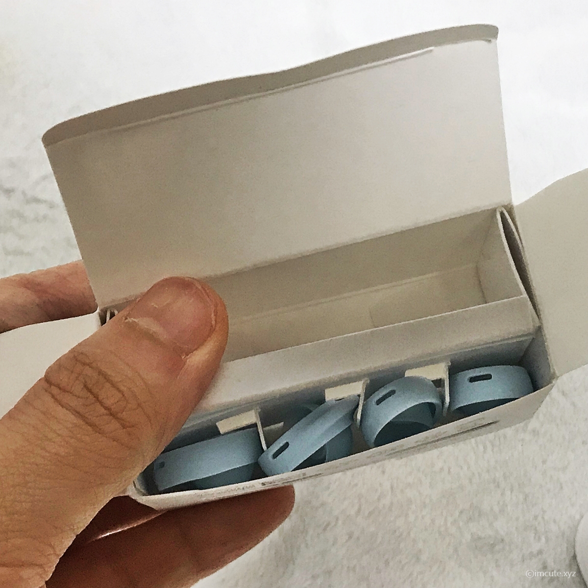 귀에 꽂기 전에 사이즈 체킹을 해보았습니다. 이런모양이고요, 노이스 캔슬링 기능은 빠졌다지만 어차피 이거 끼면 주위 소음이 다 차단되는것 같습니다.