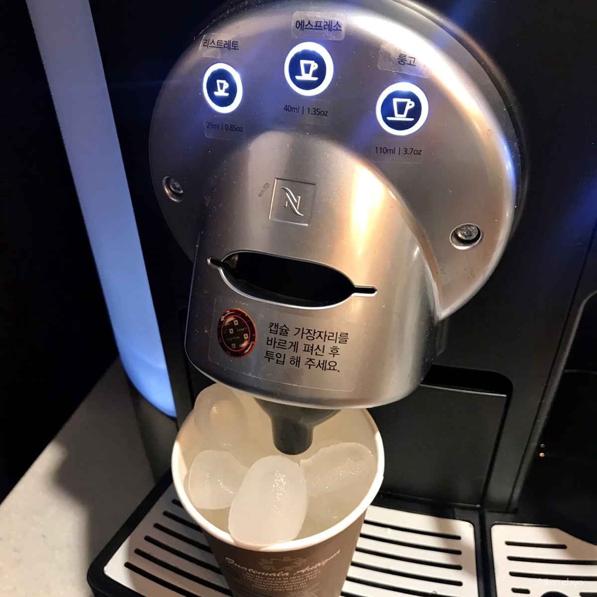 네스프레소 커피머신은 생각보다 간단했다. 카페에서 사먹을 필요 없이 캡슐으로 커피를 먹을수 있다니.?원하는 맛을 주문하고 컵에 얼음과 물을 담아서 추출하기만 하면 끝났다.