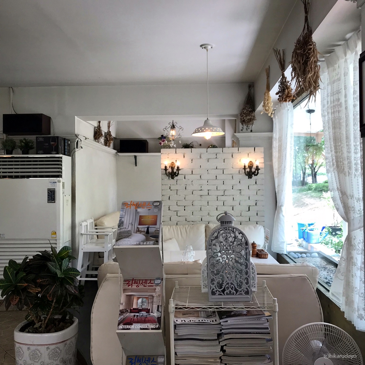 창밖을 보니 화단이 너무나도 이뻤다. 저 뒤쪽으로도 가게내부와 통하는 문이 있었다. 즉 가게 앞, 뒤쪽으로 문이 따로따로인데 단골고객분들은 저쪽으로도 들어오시더라...ㅎㅎㅎ몰랐다.