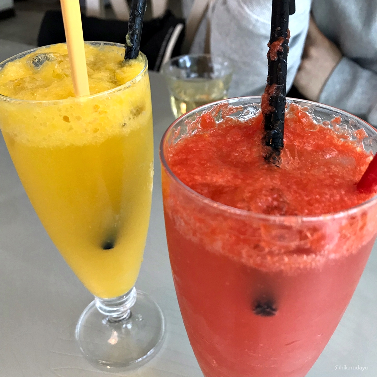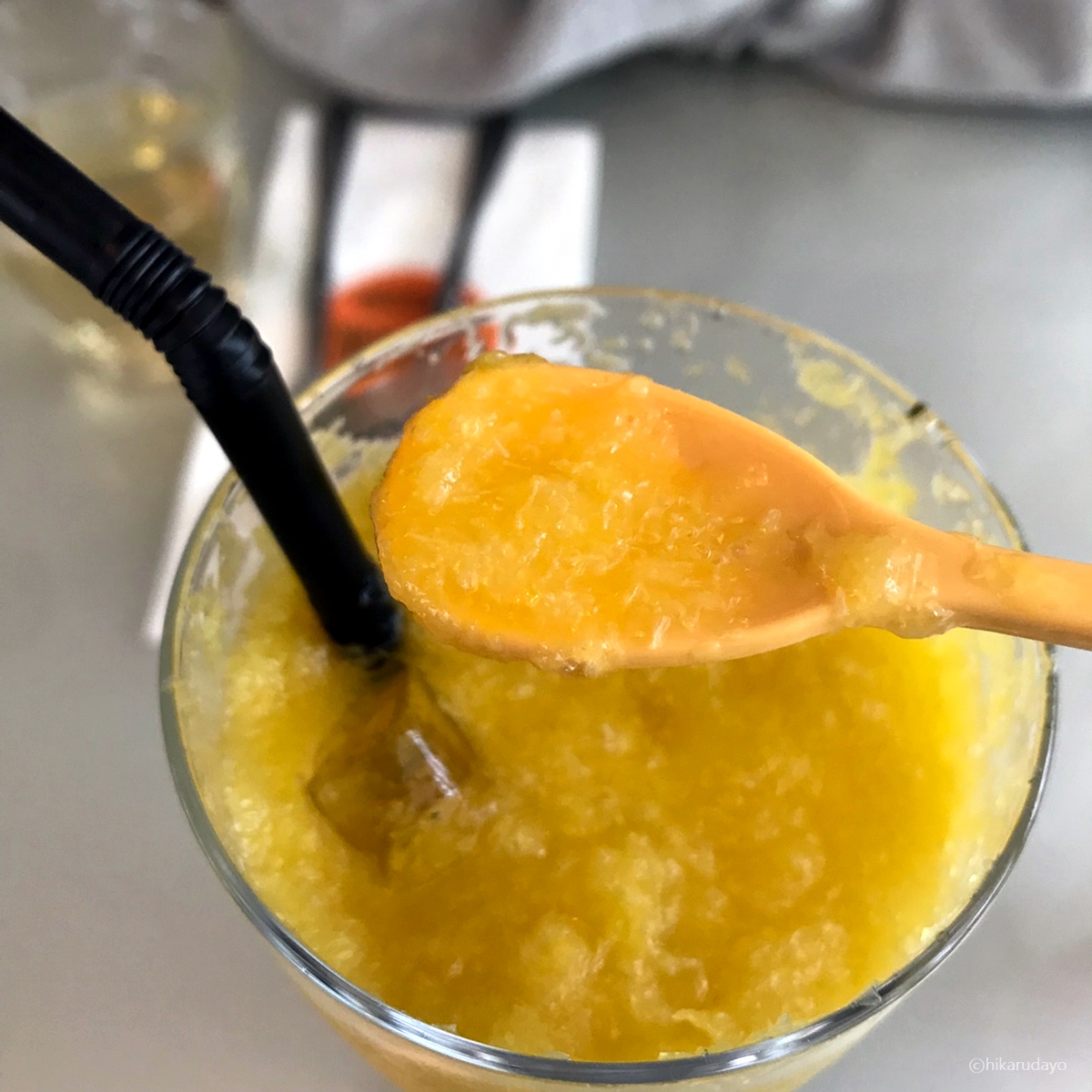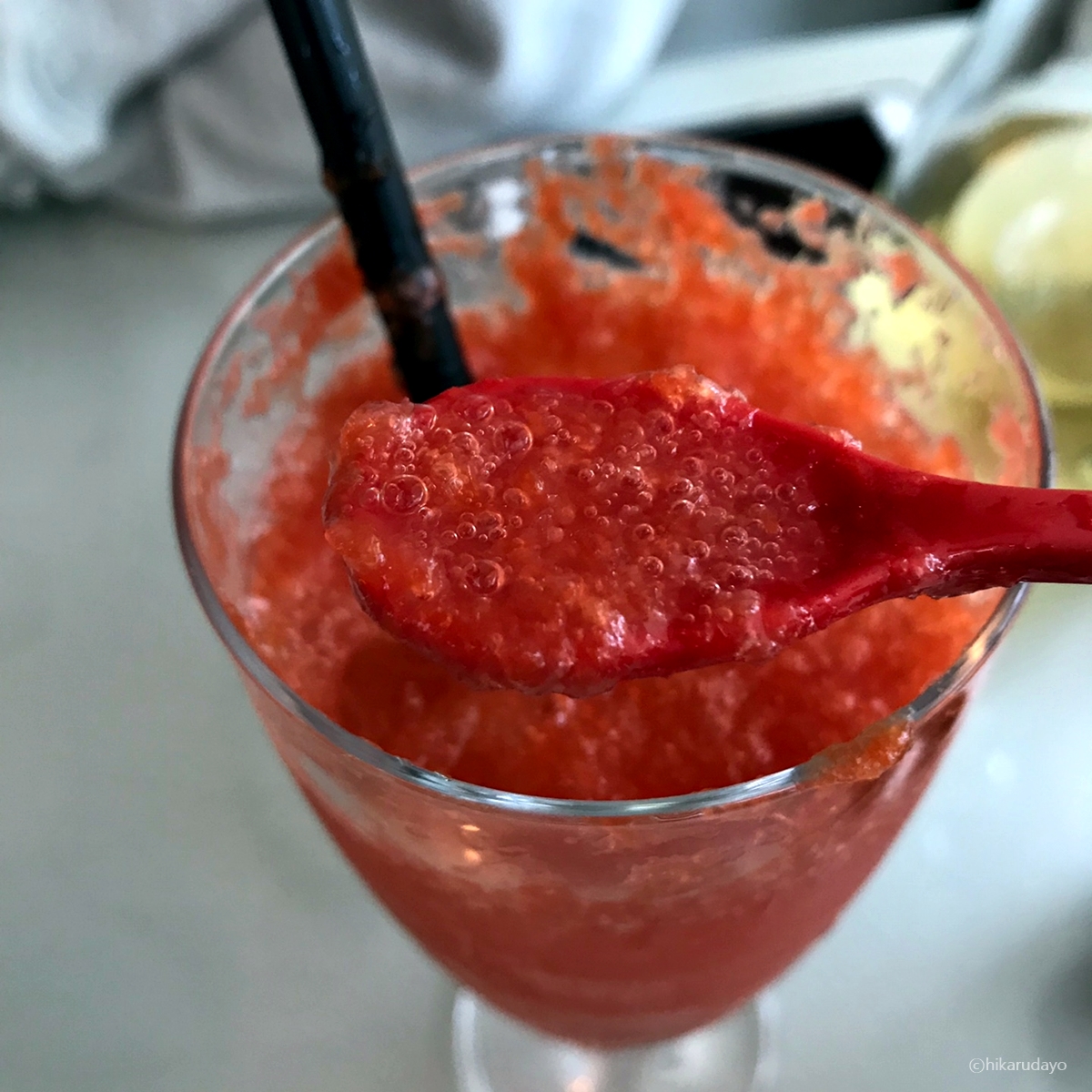 머들러 끝부분은 수저처럼 되어 있어서 이렇게 또 과육을 끝까지 다 흡입할 수가 있게 되어있지롱. 참으로 센스가 깊은 뽀모도로였다.