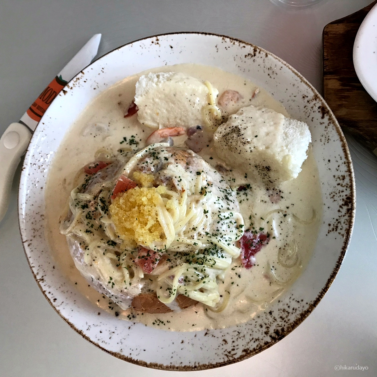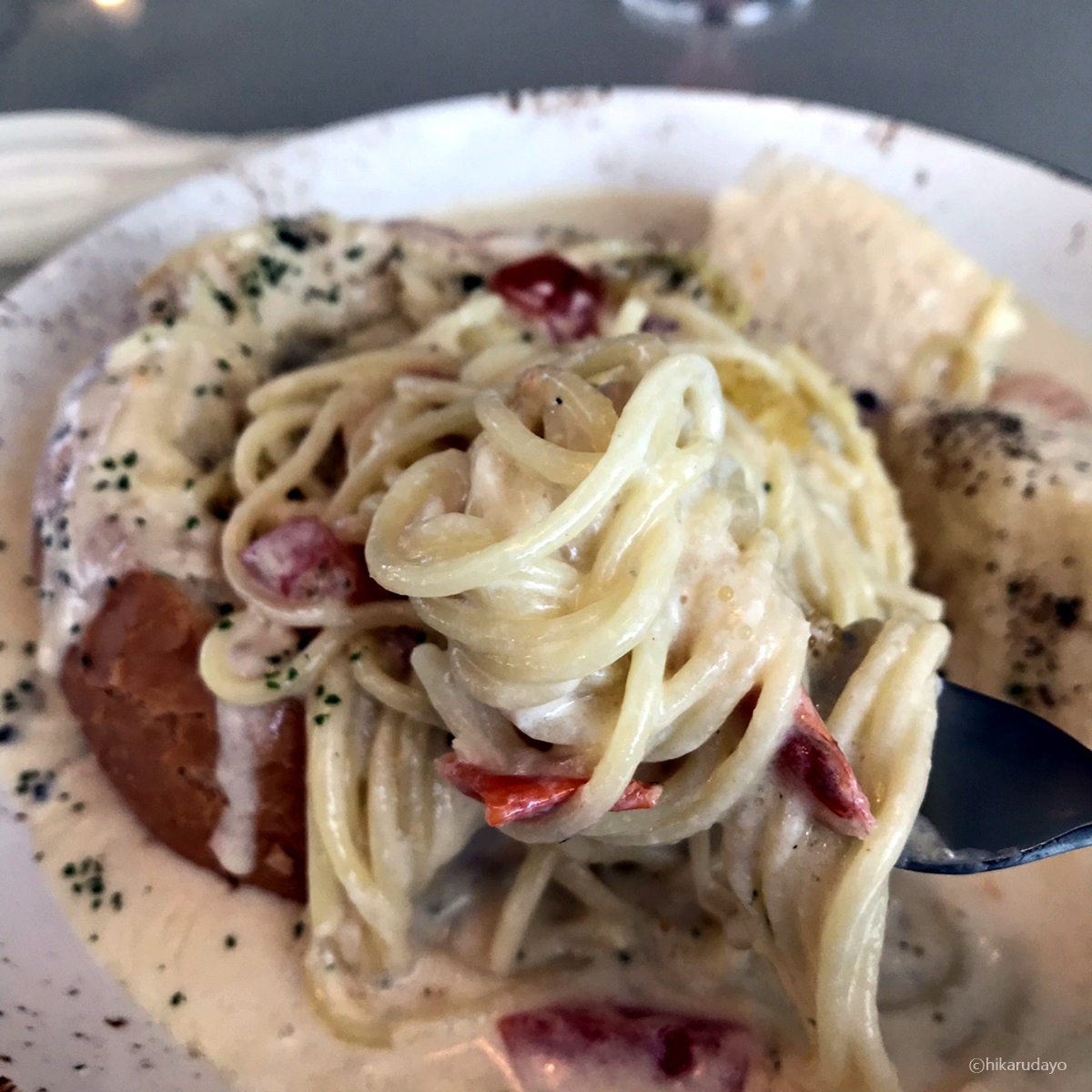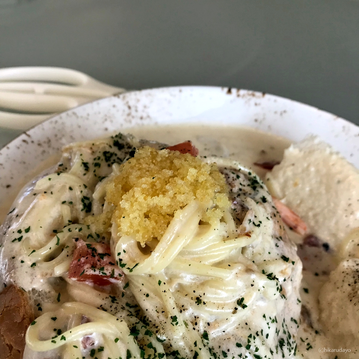 이곳은 파스타 맛집이라 그런지 진짜 파스타들이 다 고퀄이다. 하나는 리조또로 시켜볼까..? 했는데 두개 다 파스타로 해도 나쁘지 않은 선택이었다. 보시다시피, 위에 날치알 가득 올려진 이 빠네도 정말 굿이었는데 특히나 빵맛이..일품이었다.