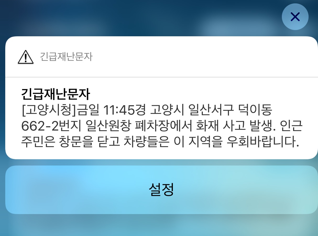 약속이 있어서 나왔는데 일산 화재 속보가.. 재난 문자까지 온다. 일산 덕이동 폐차장에서 났다고 하는데 물류센터인가보다.
