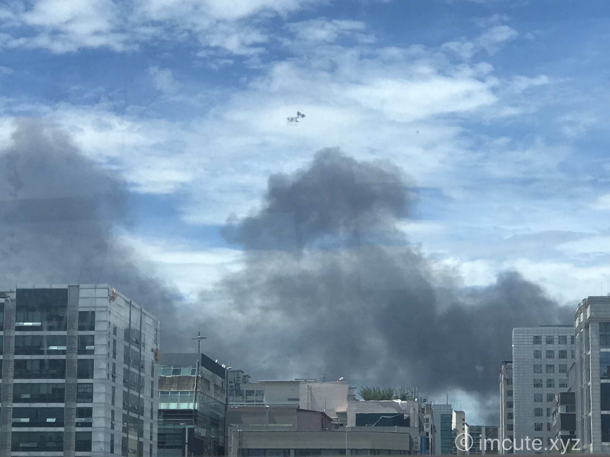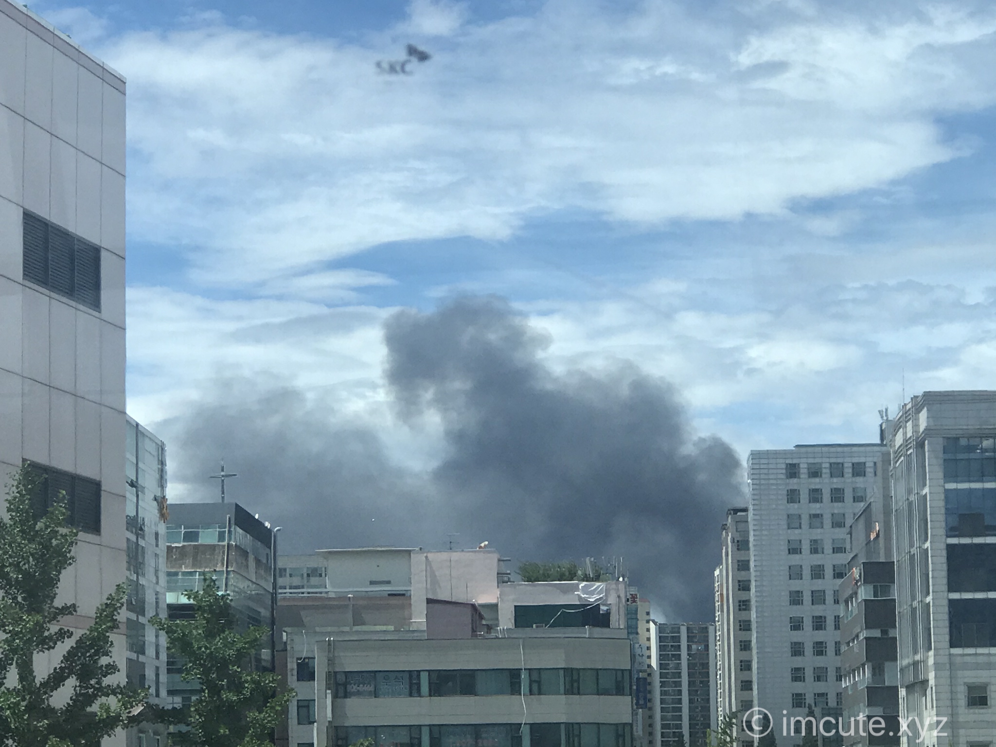 이렇게 검은 연기가. 차량은 화재 부지로부터 우회 해야 할 것 같습니다