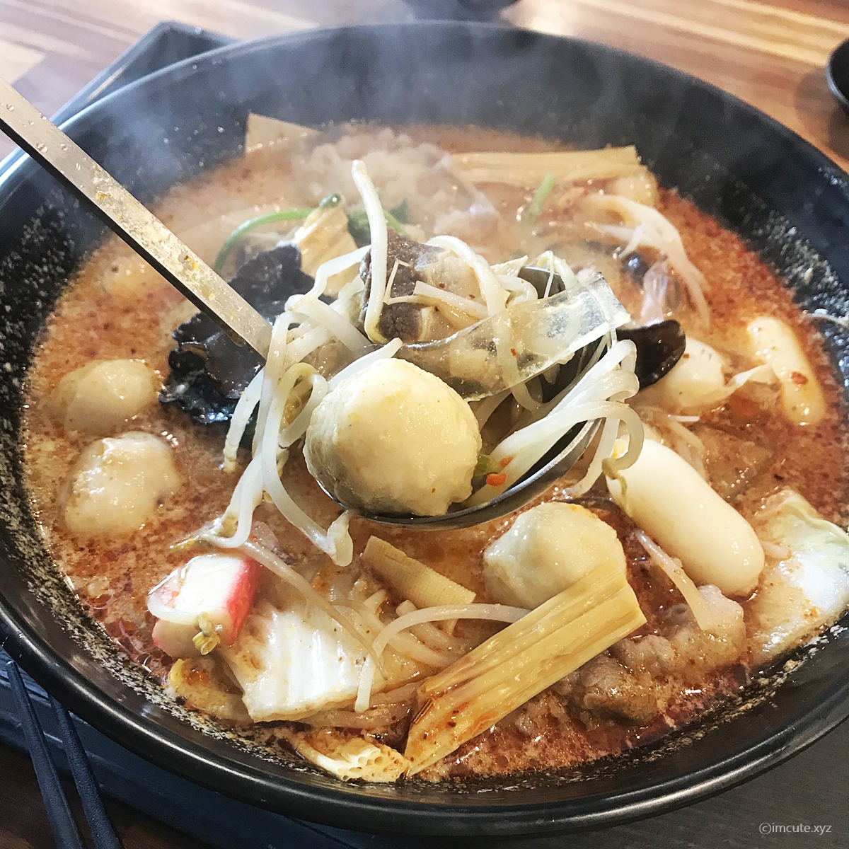 그리고, 여기는 고수가 바에는 없는데 없냐고 여쭤보니 먹을만큼 넣어서 무개를 달아주시더라고요!! 그래서 추가한거고요. 해물완자 많이많이 넣고 치즈떡이라든가 목이버섯을 넣어서 국물맛이 좋아졌습니다. 아참, 중국당면도 빼놓을 수 없는 제 완소 픽입니다.