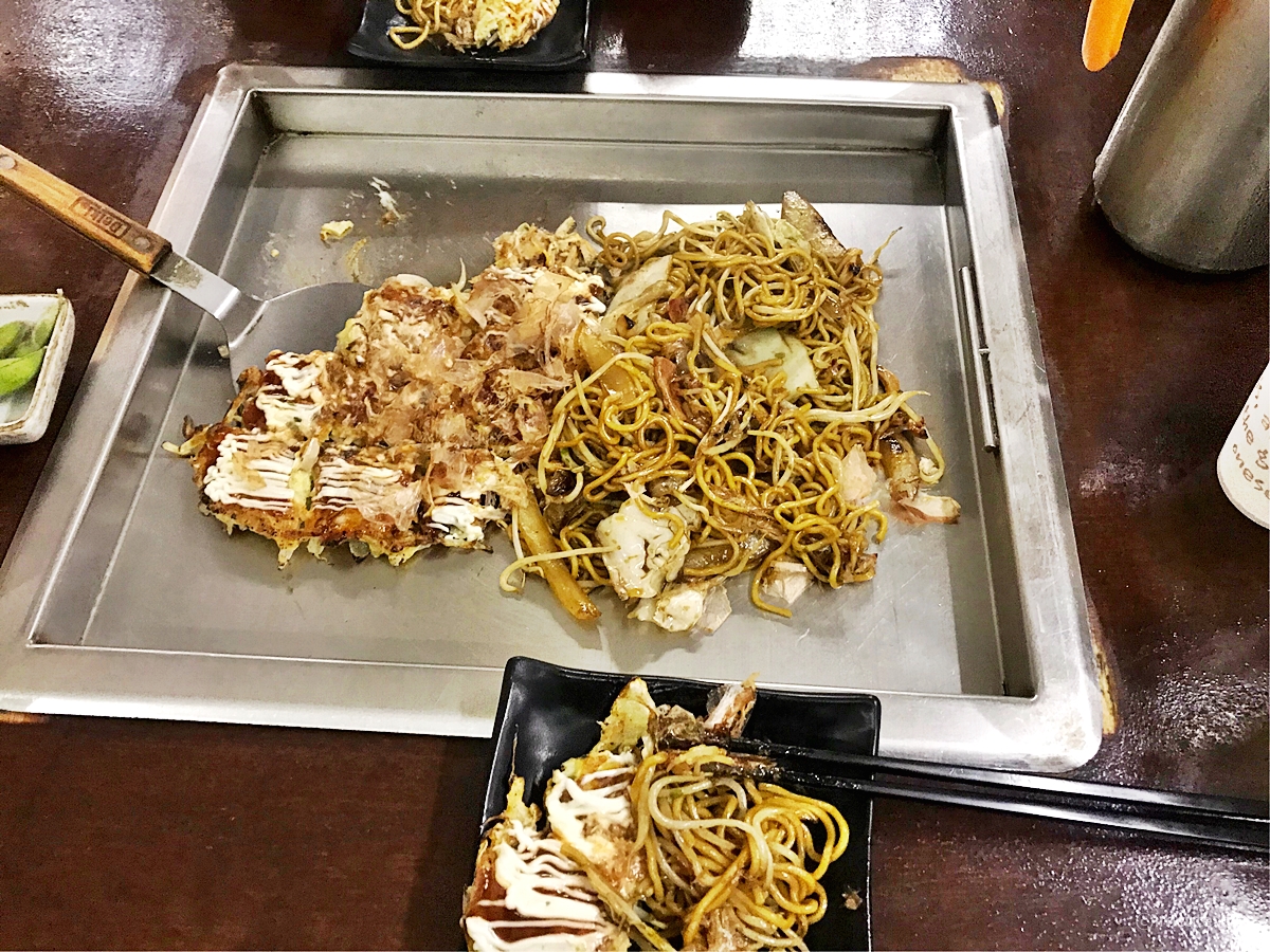가쓰오부시가 많이 들어있고 숙주가 아삭아삭하니 씹히는 것도 매력있었쥬. 게다가, 오코노미야끼를 먹으러 갔는데 덤으로 소바가..? 두 가지 맛 다 즐기기 위해선 여기입니다요. 짭짤하니 좋아요.