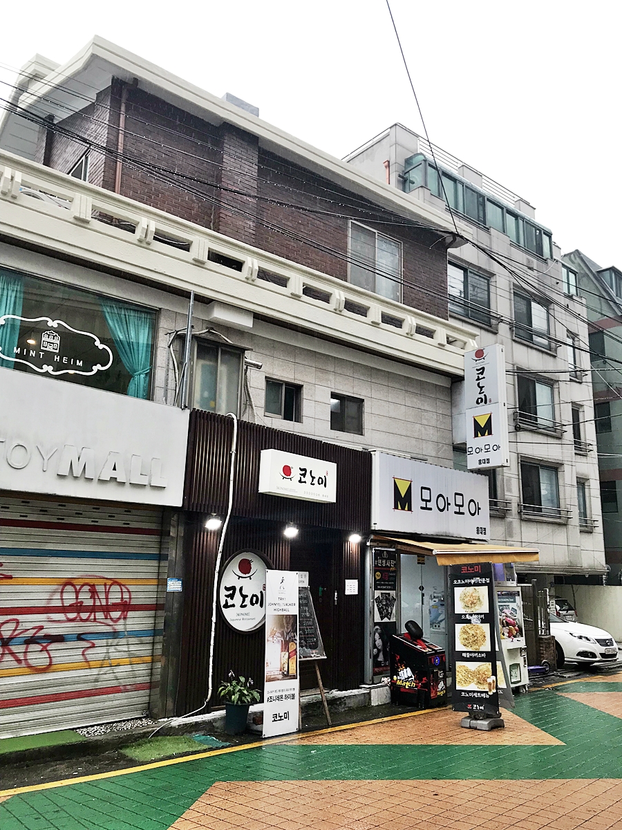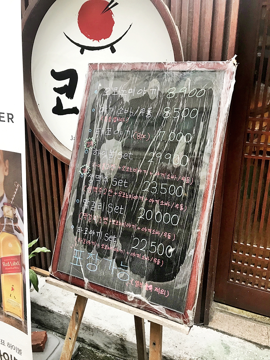 위치는 하단에 첨부했고요 이렇게 입간판과 함께 먹음직스러운 느낌을 뿜뿜하는 가게가 보입니다...! 전부터 홍대 오코노미야키 잘하는 집이래서 가보고 싶긴 했는데 이렇게 다 마주하게 되었습니다. 오래간만에 지인이랑 뵙기위한 날이었더니 무척이나 기분이 좋네요!