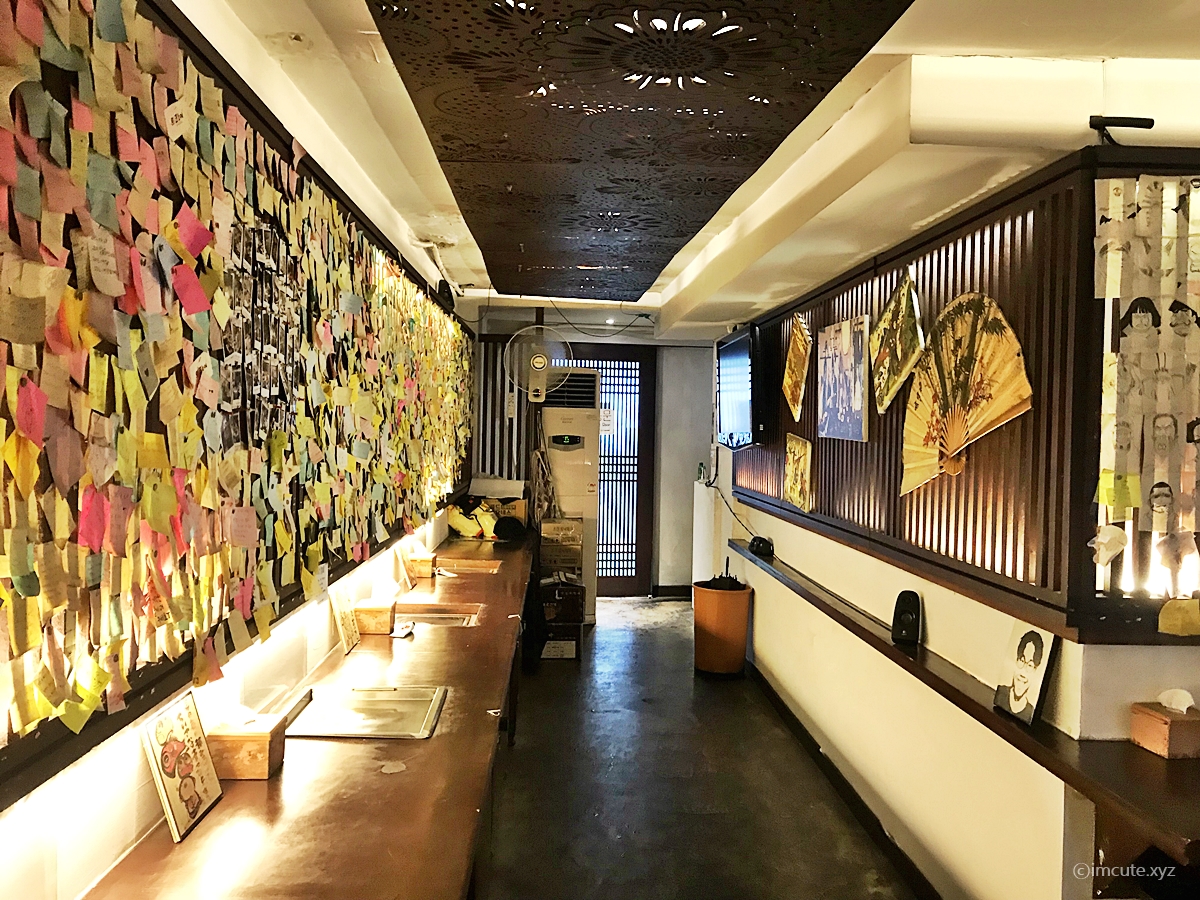 벽에 붙어 있는 흔적들은 홍대생들만의 힙한 분위기도 내주었고요. 역시 홍대는 달라...하면서 이런저런 분위기를 보았습니다. 뭔가 혼자 먹어도 좋은 카운터석도 있고 이래저래 좋더라고요~ 저는 맘에 들었습니다. 이 느낌아니까!! 약간 오사카의 선술집 느낌이 나는듯 했습니다.