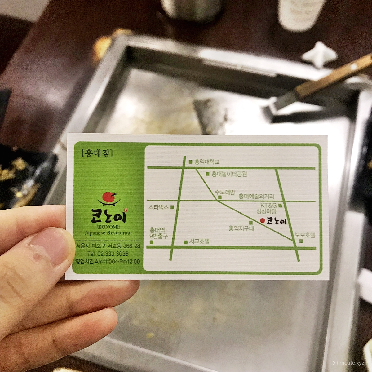 오늘도 어김없이 명함 사수했습니다!! 맛집 도장깨기 하고 명함 하나씩 가져오는 재미가 쏠쏠합니다 (: 여러분께서도 정보 보세요. 홍대입구역 2호선에서 내려서 머지않은 위치이고요~ 명함마저 센스가 돋보이네요. 나름 홍대안에서 오래된 가게이니까.... 맛은 믿고먹는거 같습니다. 가격이 착해서 전 또 올듯요. 암튼 이 곳이 홍대 오코노미야키 맛집이라고요!! 꼭 와보세요. 후회는 1도 안하실거임 (일단 가격이 저렴)