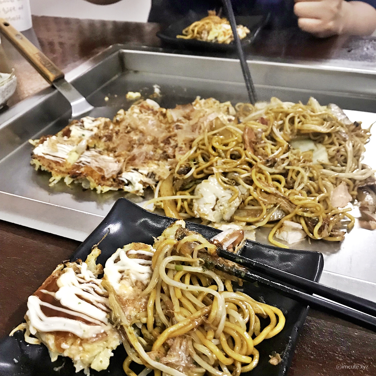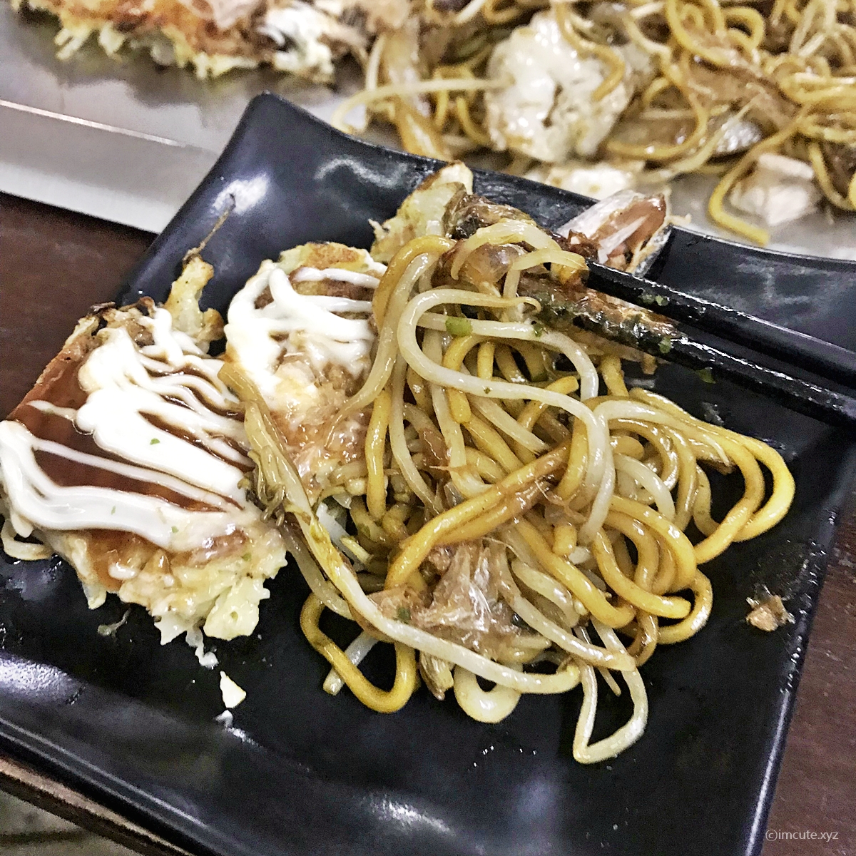 가쓰오부시가 많이 들어있고 숙주가 아삭아삭하니 씹히는 것도 매력있었쥬. 게다가, 오코노미야끼를 먹으러 갔는데 덤으로 소바가..? 두 가지 맛 다 즐기기 위해선 여기입니다요. 짭짤하니 좋아요.