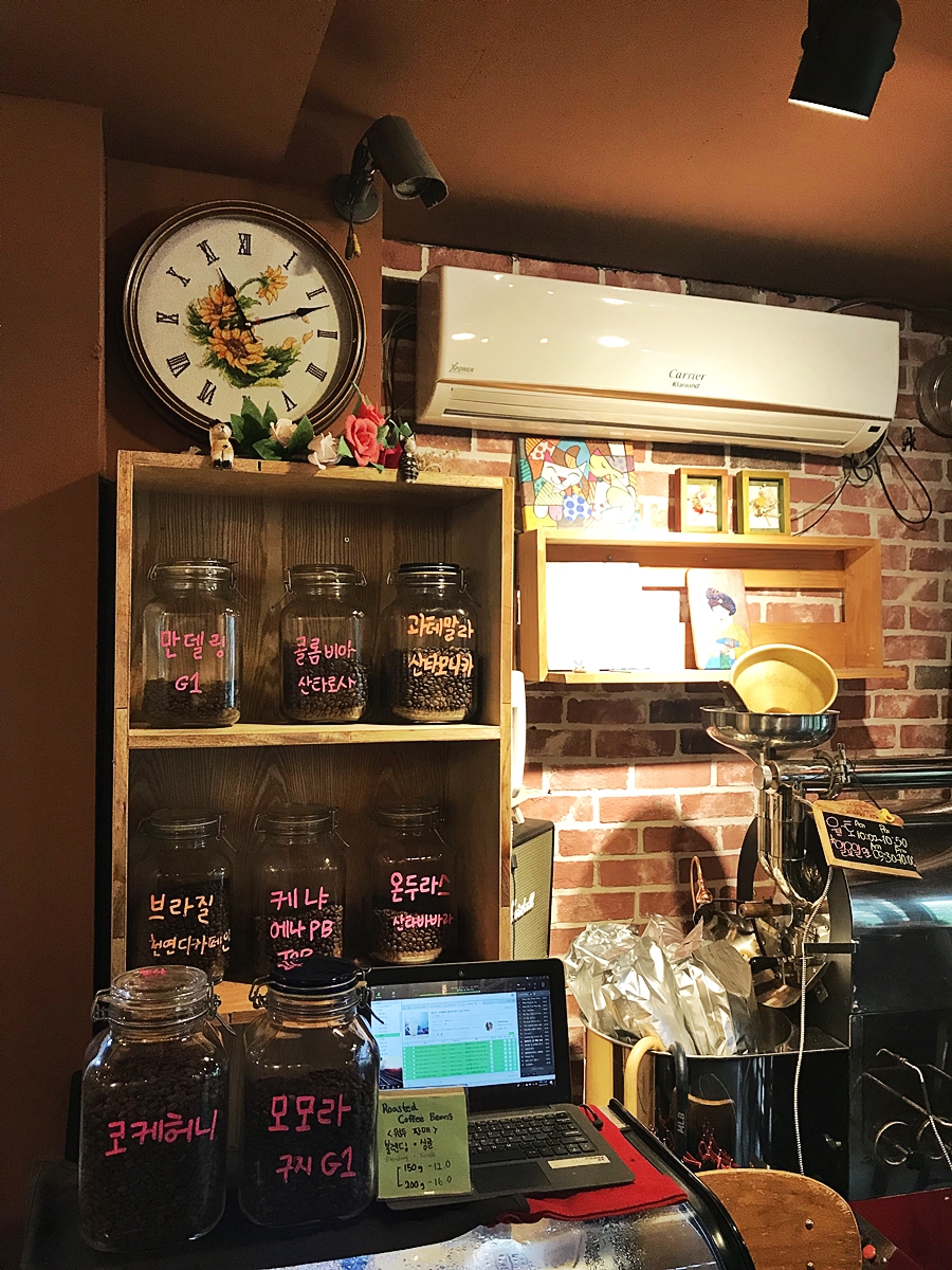내부 자리가 넓진 않았는데요 잠시 시간 보내기엔 더할나위 없이 좋았어요. 나중엔 일찍 와서 여기 앉아있을까 하는 생각도 해보네요. 제가 원체 커피를 좋아하는데 이 안에서 커피향 맡는 것만으로도 너무 기분좋아서~~