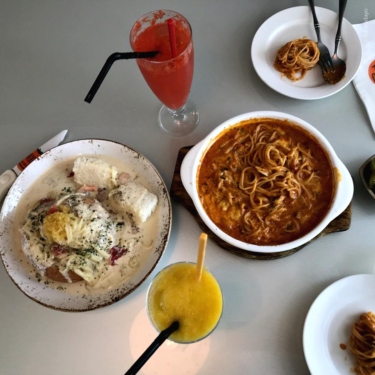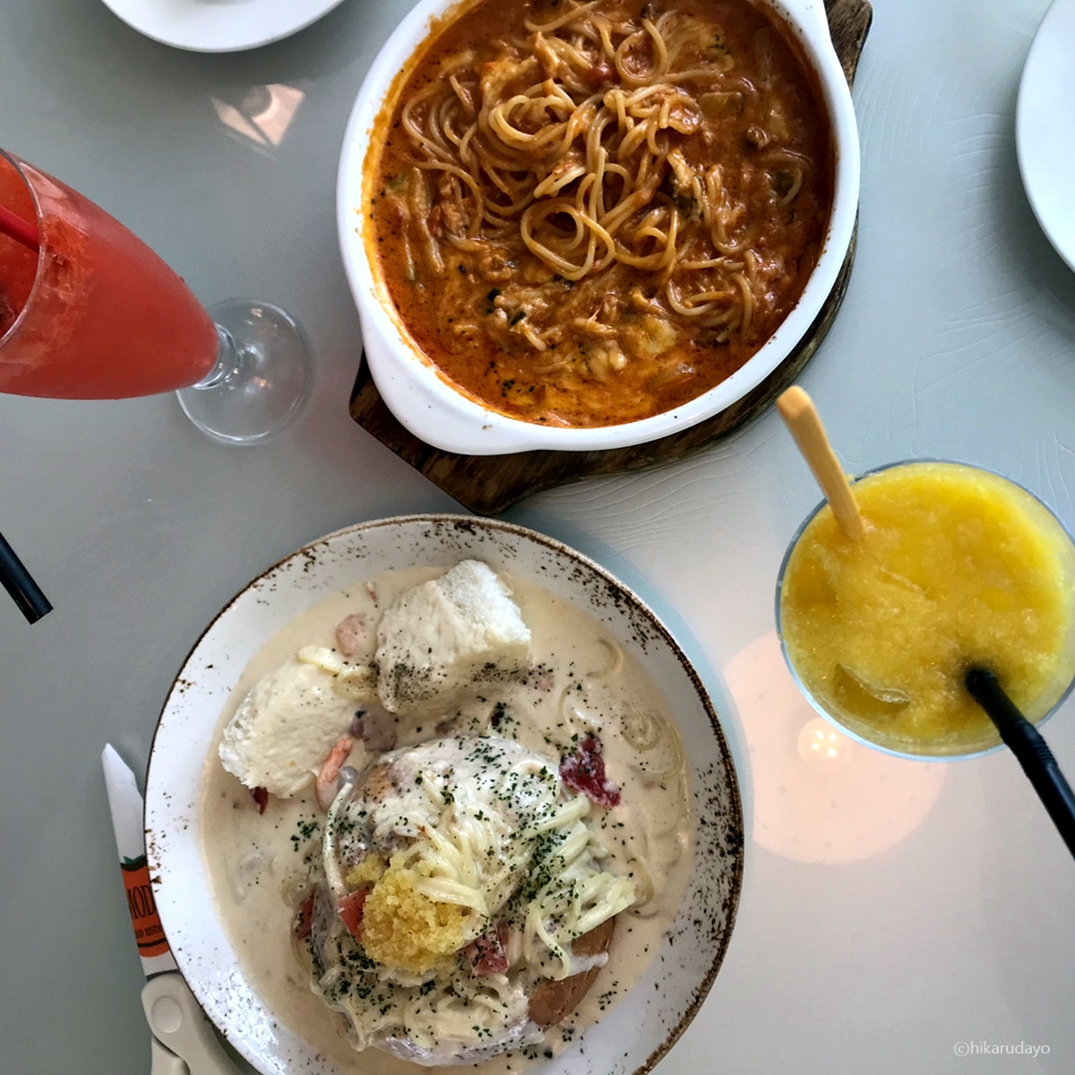 이곳은 파스타 맛집이라 그런지 진짜 파스타들이 다 고퀄이다. 하나는 리조또로 시켜볼까..? 했는데 두개 다 파스타로 해도 나쁘지 않은 선택이었다. 보시다시피, 위에 날치알 가득 올려진 이 빠네도 정말 굿이었는데 특히나 빵맛이..일품이었다.