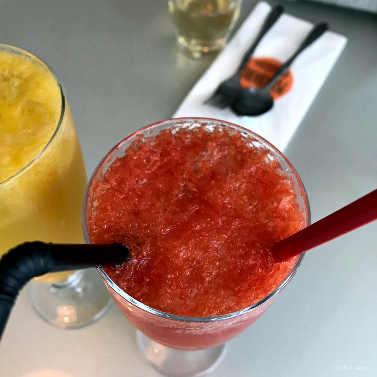 오와~ 이렇게 에이드가 이쀼리하게도 잘 나온다. 컵이 굉장히 커서 안에 과육까지 잘 저어먹어야 한다. 아니면 밑에 다 가라앉아 있으니, 그래서 빨대 말고 저을거리를 하나 더 넣어주셨다 (머들러)