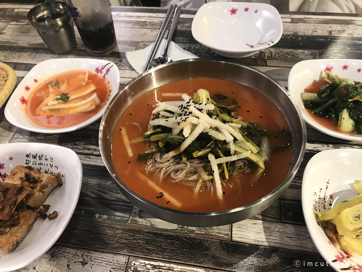 시원한 메밀국수 한 그릇~ 그릇이 엄청 큰데요 진짜 이거 어떻게 위장에 다 넣나, 했는데 실제로 이 국물맛도 엄청나고 아삭아삭한 건더기들의 조화가 아주 최고였습니다요.!! 국물도 다 직접 육수를 우려내신 거라 하는데요 그 맛이 참 깊었어요. 면치기 후루루룩 소리내면서 먹었어요. 그것이 면요리를 마주 대하는 예의라면서요??