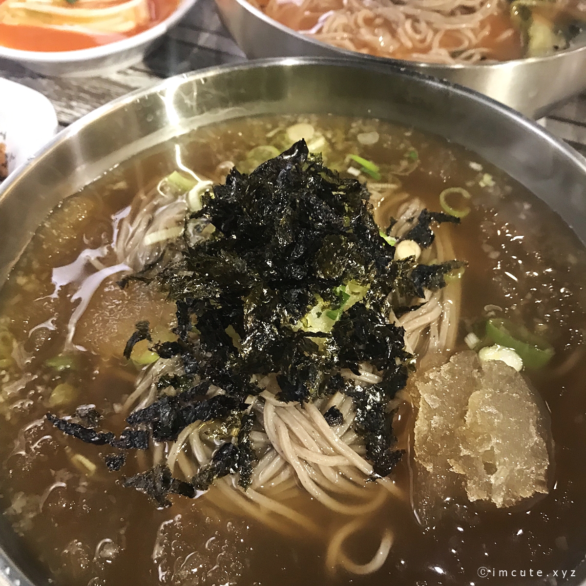 시원한 메밀국수 한 그릇~ 그릇이 엄청 큰데요 진짜 이거 어떻게 위장에 다 넣나, 했는데 실제로 이 국물맛도 엄청나고 아삭아삭한 건더기들의 조화가 아주 최고였습니다요.!! 국물도 다 직접 육수를 우려내신 거라 하는데요 그 맛이 참 깊었어요. 면치기 후루루룩 소리내면서 먹었어요. 그것이 면요리를 마주 대하는 예의라면서요??
