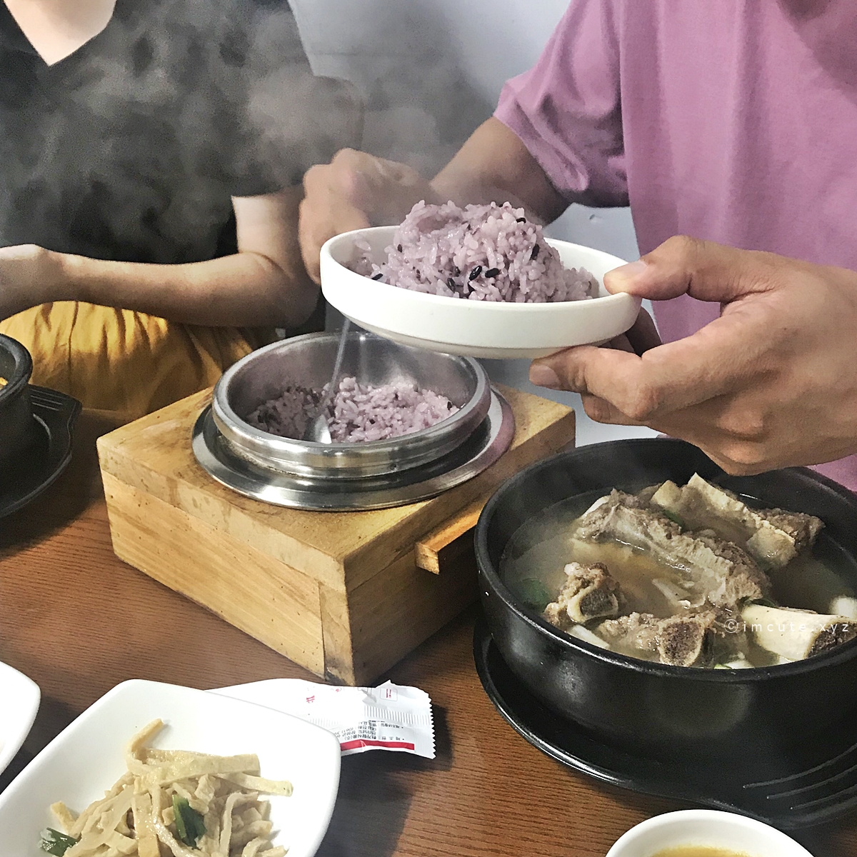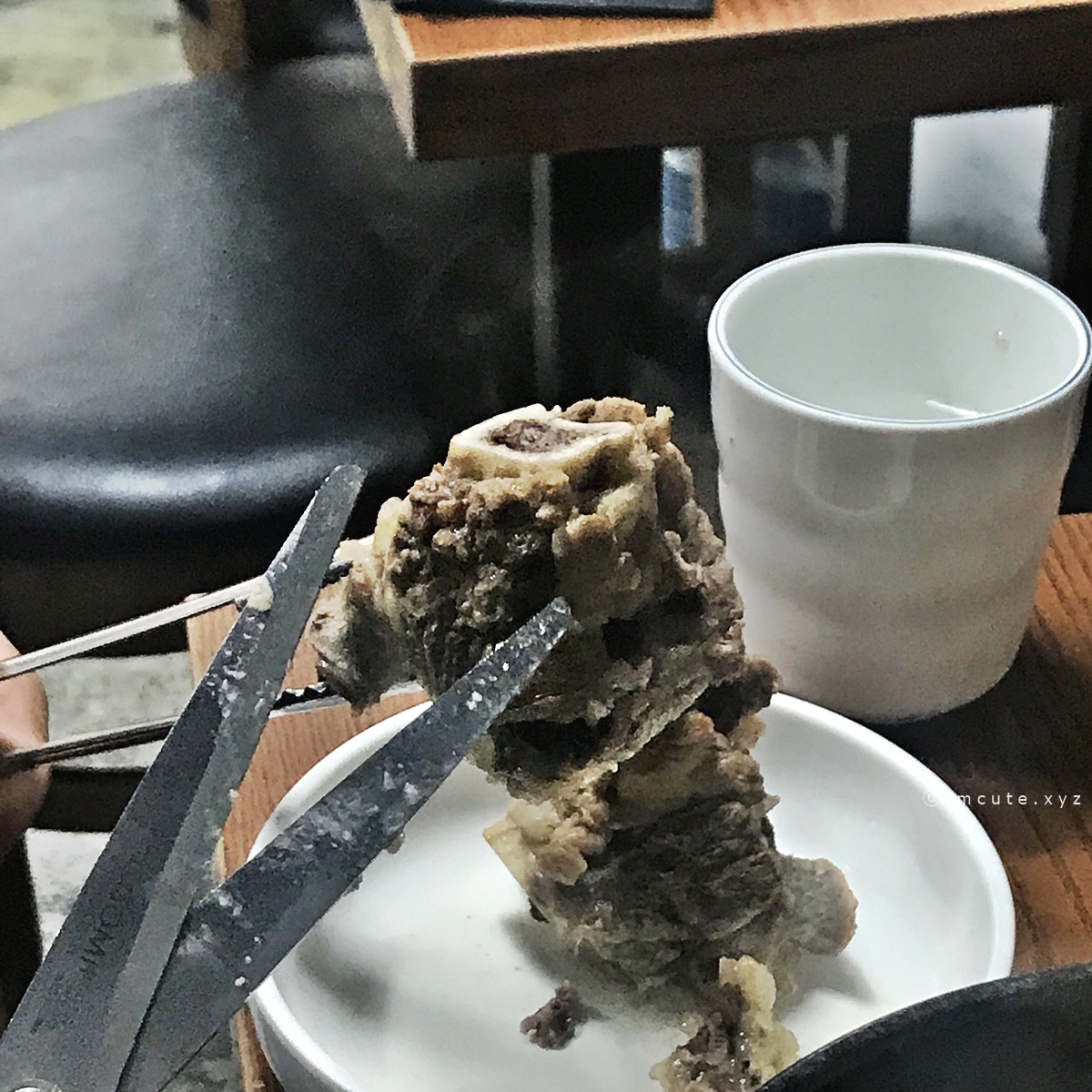 제가 앞서도 말했는데요 가위로 이렇게 밑작업을 미리 해두지 않으면 먹을 때 불편하겠드라고요. 그래서 이런 작업을 필수적으로 거쳐주는겁니다(...) 처음엔 배고픈 와중에 고기 자르는 것이 고되지만 필시 솥밥이랑 함께 잘라놓은 갈비탕을 즐기는 과정은 행복으로 다가오거든요. 그래서, 이렇게 하시길 추천합니다.