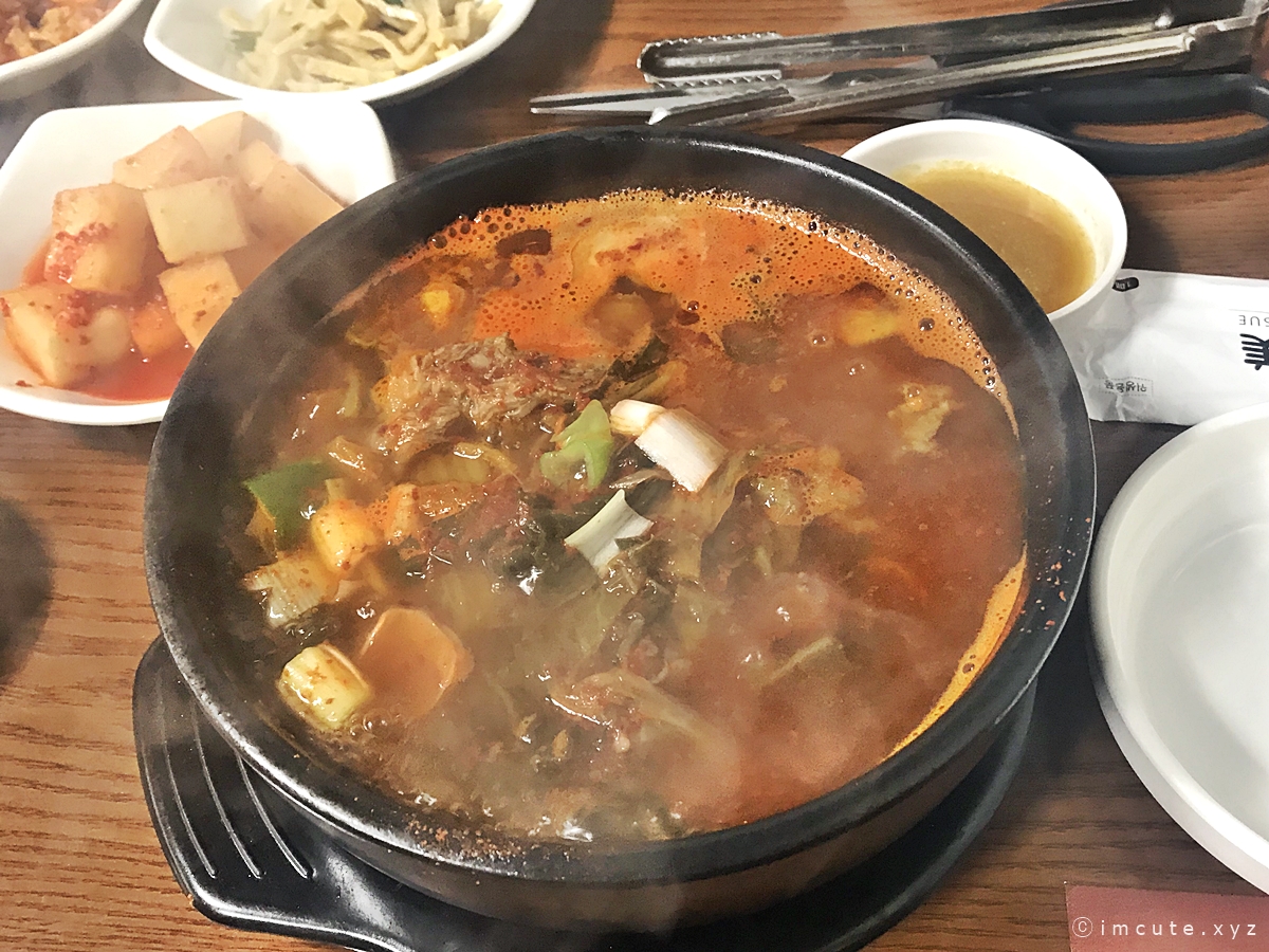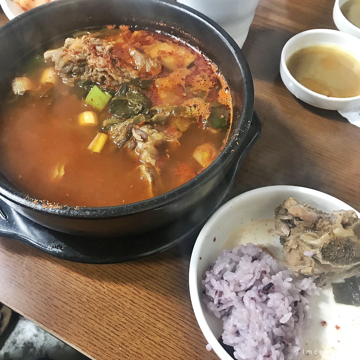 당면사리가 들어있어서 이안에 밥을 말아먹어도 좋아요. 갈빗대가 엄청 크고 두툼한데 원산지가 국내산이건 외국산이건 그냥 뜯는데에 의의를 두고싶습니다. 전 미국산이라도 안따지거든요. 아무튼 안에 우거지가 씹히는 게 너무 좋아서 저는 하얀국물도 좋고 이것도 좋고 그랬네요.
