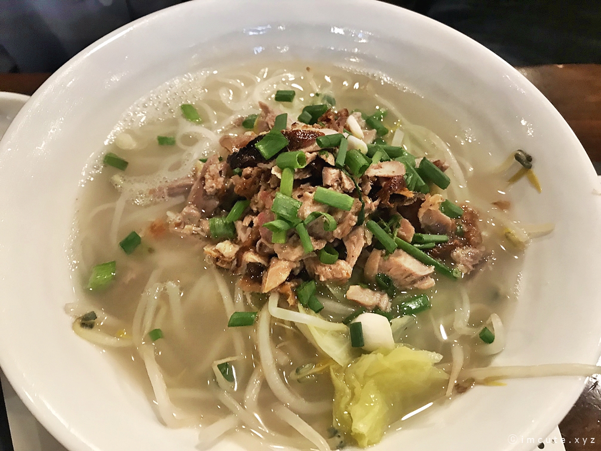 오리쌀국수인데요, 일반적인 베트남 쌀국수랑 비슷하면서도 국물맛이 살짝 달라요. 곁다리로 고수가 나오드라고요~ 저는 쌀국수에 오리고기가 들어간 건 처음 봤어요. 중국은 오리고기 요리가 참 많은거 같아요. 예를 들어 북경오리를 맨손으로 때려잡는다는 말도 있으니 말이죠. 전 소고기 쌀국수만 먹다 이런건 난생 처음보니 신박했어요.