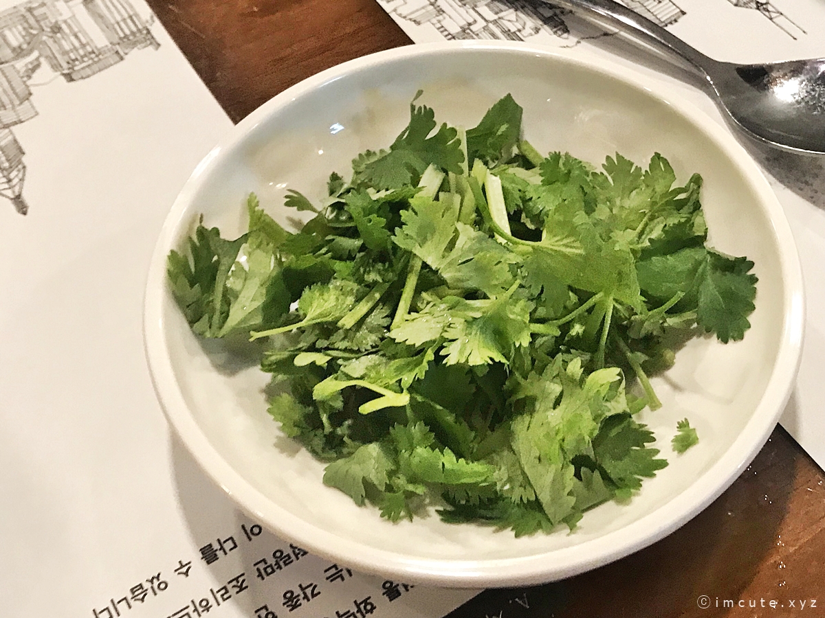 고수를 싫어하는 사람도 많은데 우리 테이블은 마치 다들 짠 거처럼 다들 고수가 맛나다 하드라고요. 그래서 많이 곁들여서 먹어주었네요.