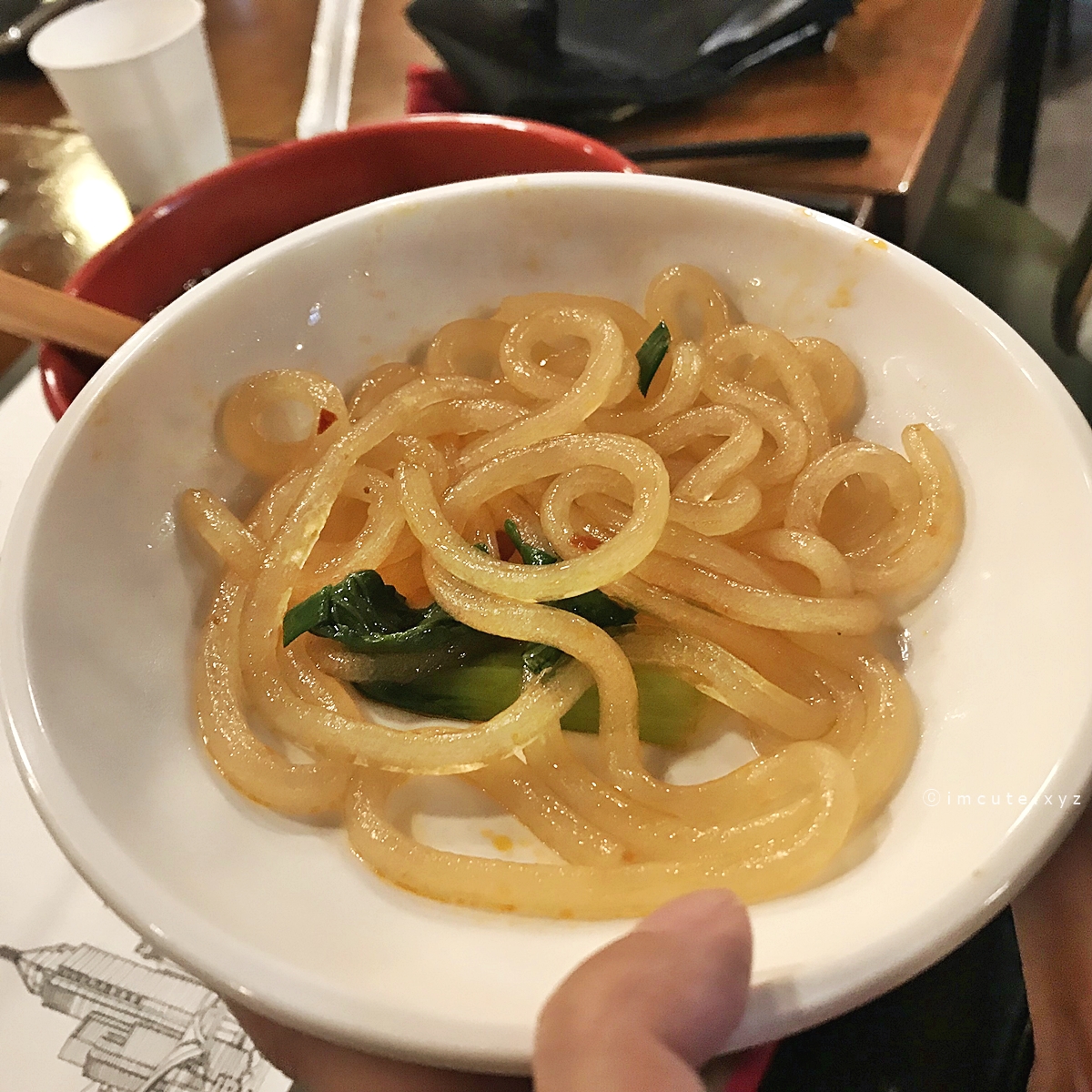 일부러 매운가 자제하느라 안먹은건데 사천식 매콤탕면 국물이 제 입맛엔 더 잘 맞더라고요. 마라탕 좋아하시는 분들은 분명 좋아하실거 같어(...) 게다가 옛날에 일본 후쿠오카 어딘가에서 먹어본 그 곤약 면이 생각나더라고요. 담에는 꼭 이거 시켜야지. 그래두 림가기의 명물은 오리쌀국수래요~ 단체로 왔을때 한두개 시켜봐요