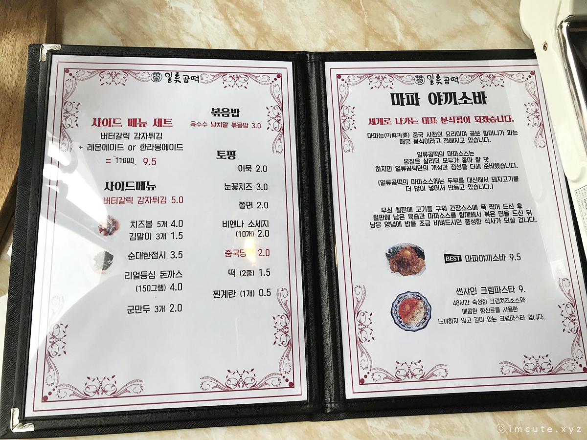 오른쪽의 마파 야끼소바는 세계로 나가는 대표 분식집을 표방하는 이 곳에서만 먹을 수 있는거고요. 위에 야끼소바는 돼지고기가 많이 들어간 스타일인데 약간 미트소스 스파게티 느낌이더라고요, 진짜 꼭 드셔보실 만한 강추메뉴! 썬샤인 크림파스타는 9000원으로, 이집만의 특제 크림치즈와 향신료가 들어있어서 느끼하지만은 않은 거랍니다.