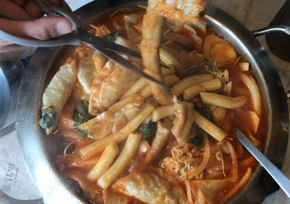 위에서 항공샷도 찍어보고 그랬습니다. 아참 여기 떡은 정말 기~다란 형태인데요 냄비안에 부글부글 끓는 격정적인 샷이 아주 인상깊지 않나요? 특히 매운걸로 시켜서 아주아주 기뻤습니다...!! 저는 매운거를 주기적으로 먹어주어야 느끼한 속이 좀 가라앉는 것을 느끼거든요. 같이 간 일행두 참 맛났대요.
