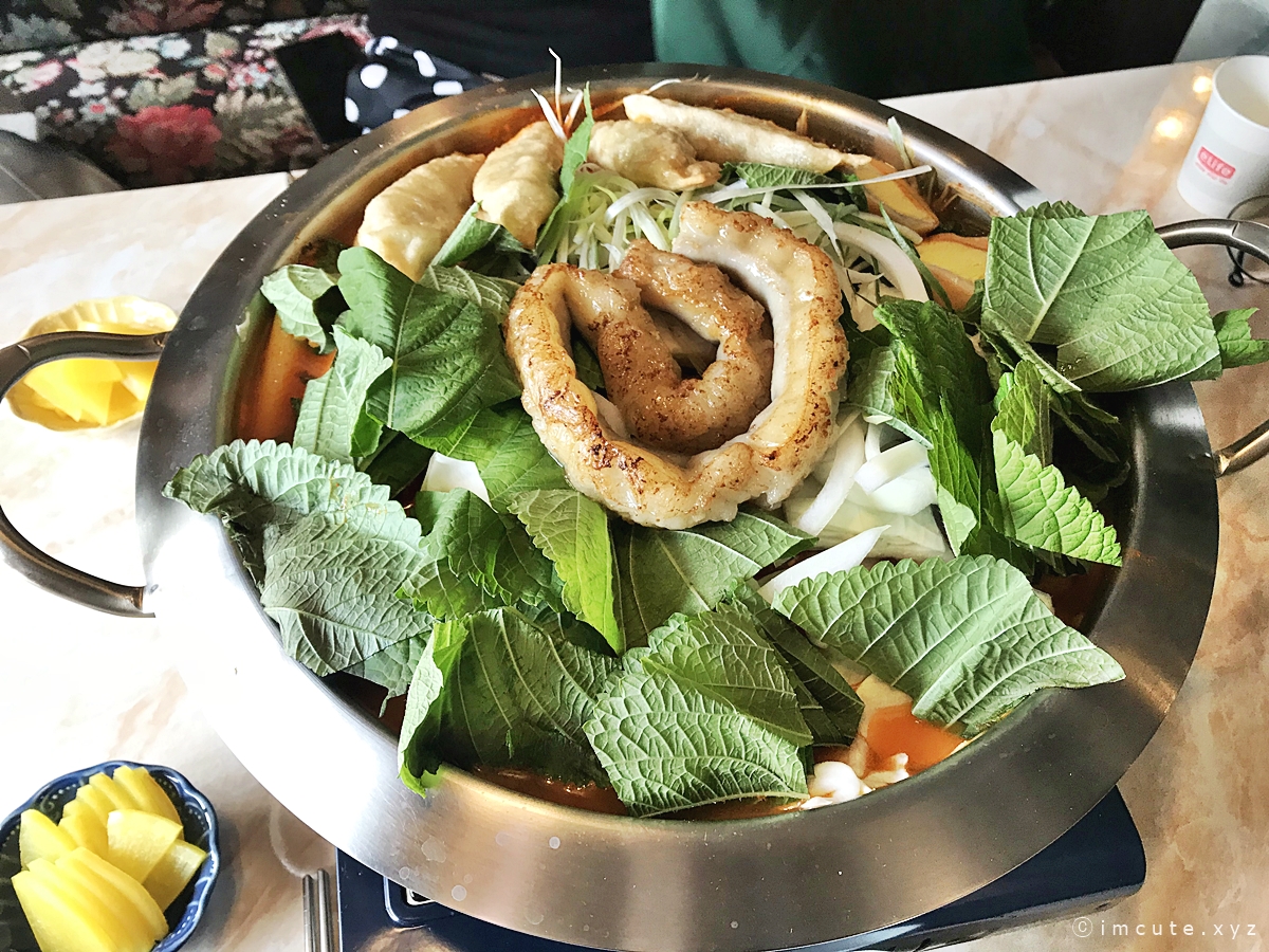 곱창이 들어갔는데 맛이 없을 리 만무하겠지요. 깻잎을 대체 몇 장이나 넣어주신건지 통이 참 큽니다. 이건 3인분에 이것저것 추가한 모습이기에 냄비가 터지려고 합니다.