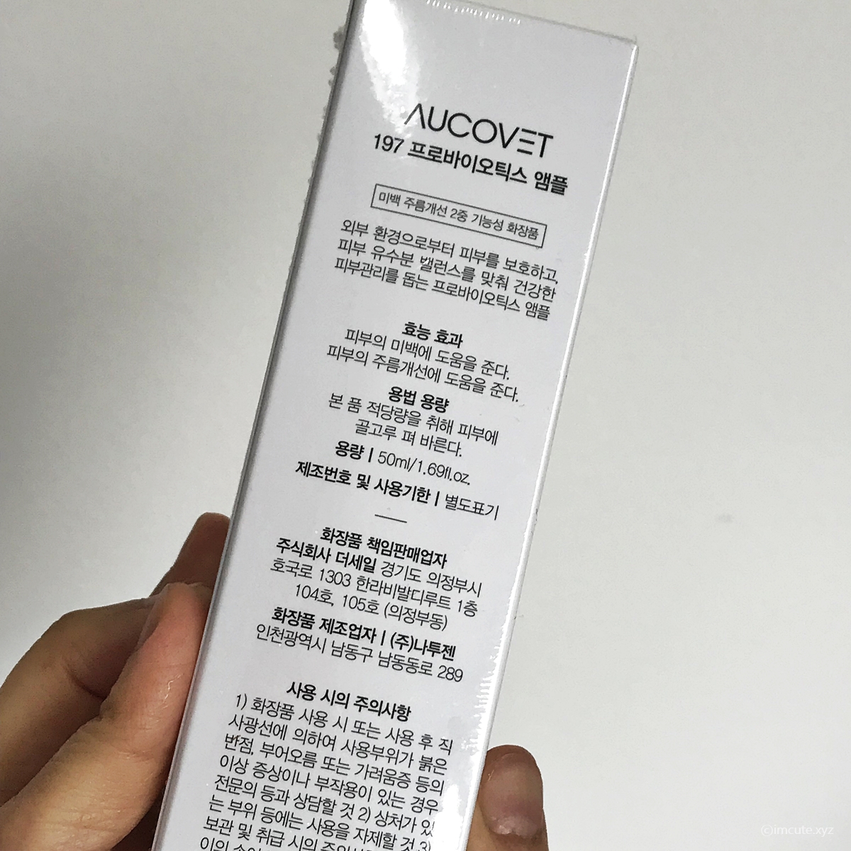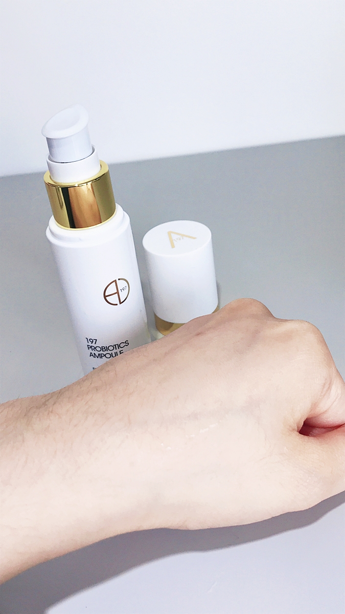 한 손에 쏙 들어오는 197 Probiotics Ampoule의 자태!! 흰색과 골드색의 패키지가 이쁘기까지 해서 화장대 위에 놔두면 얼마나 이쁠지 상상이 가시나요. 저는 얼굴에 발라주는것도 좋지만 이런 고급짐이 맘에 들더라고요.