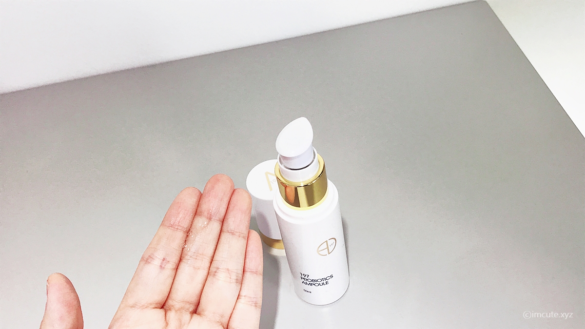 한 손에 쏙 들어오는 197 Probiotics Ampoule의 자태!! 흰색과 골드색의 패키지가 이쁘기까지 해서 화장대 위에 놔두면 얼마나 이쁠지 상상이 가시나요. 저는 얼굴에 발라주는것도 좋지만 이런 고급짐이 맘에 들더라고요.