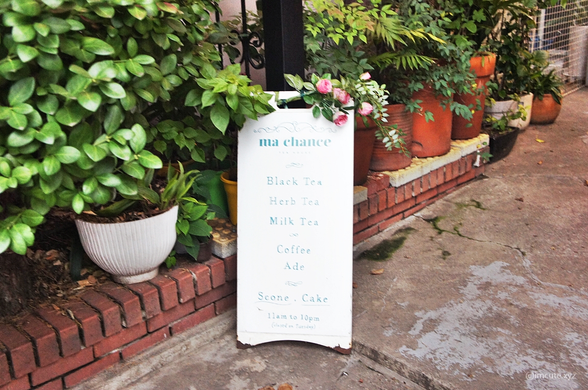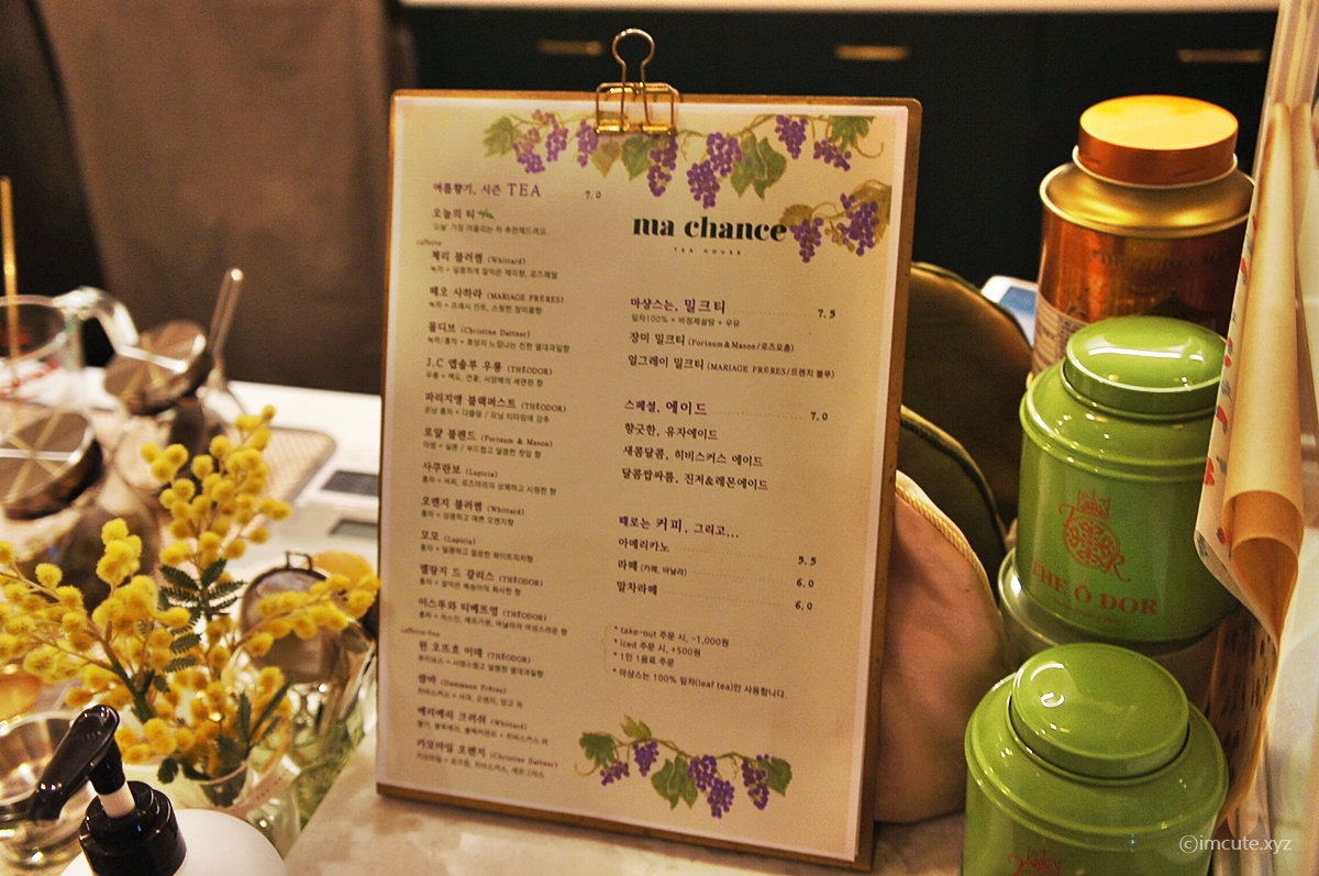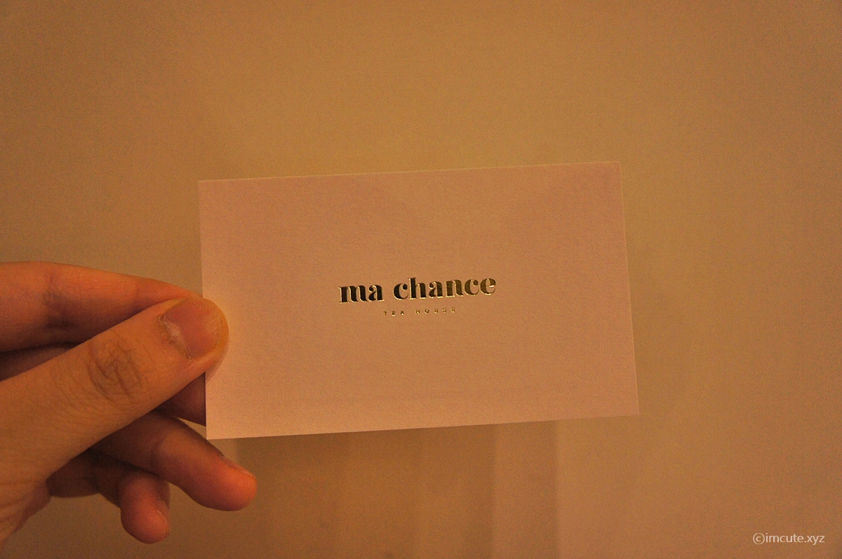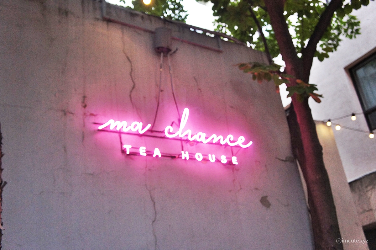 들어가기 전 입구에서 볼 수 있었던 네온 사인 간판. ma chance TEA HOUSE 라고 써 있다. 감성 셀피를 찍으면 매우 잘 나올거 같은 포토존 느낌이다. 처음엔 이걸 어떻게 읽지? 했는데 검색해보니 마샹스라고 읽는가 보다.