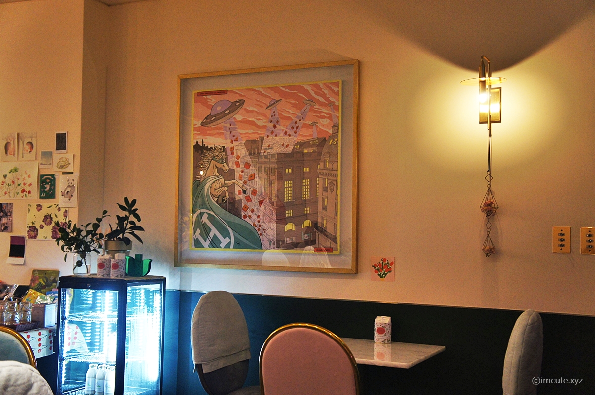 카페 마시며 내부에 걸려있는 그림만 봐도 힐링이 되는 이 기분은 다 뭐지... 여기서 일하시는 분은 얼마나 행복하실까 그런 상상을 해본다. (물론 진짜 서비스업을 하시면 느끼는 기분은 다르겠지만) 후후후.단골이 되고싶다.