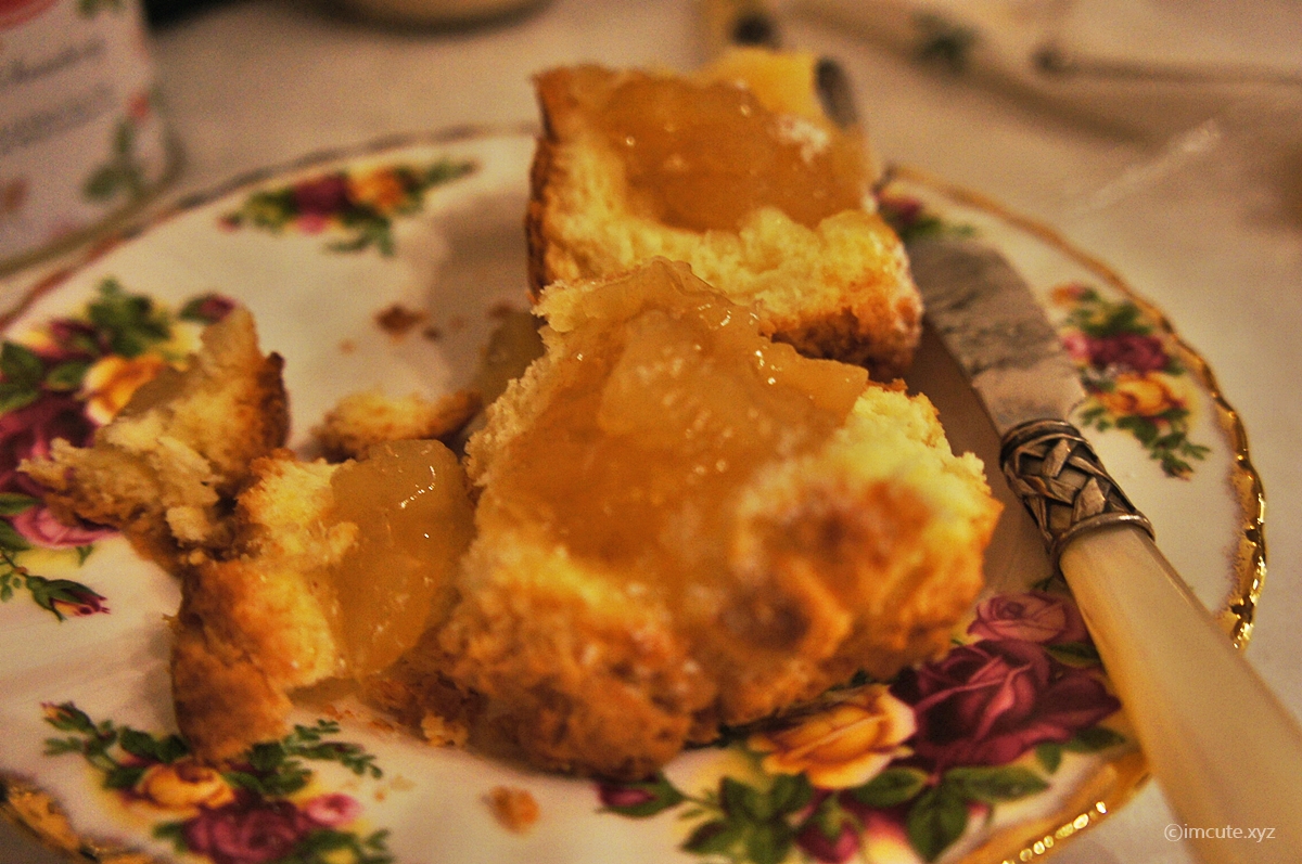 매우 꾸덕꾸덕! 겉은 딱딱하고 속은 부드러운 스콘을 애플 필링이 장식해주니 이거야말로 너무 황홀한 식사가 아닌가.