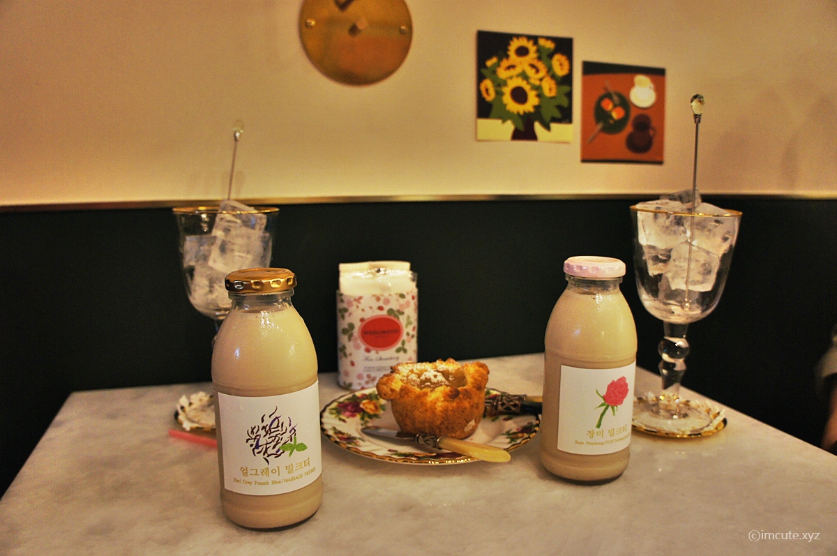 미리 만들어 둔 듯한 밀크티~ 장미 밀크티는 딱 하나 남았네. 아마 여기서 인기 메뉴인거 같다. 나는 장미보다 그냥 진한 얼그레이 홍차가 땡겨서 그렇게 주문했다.