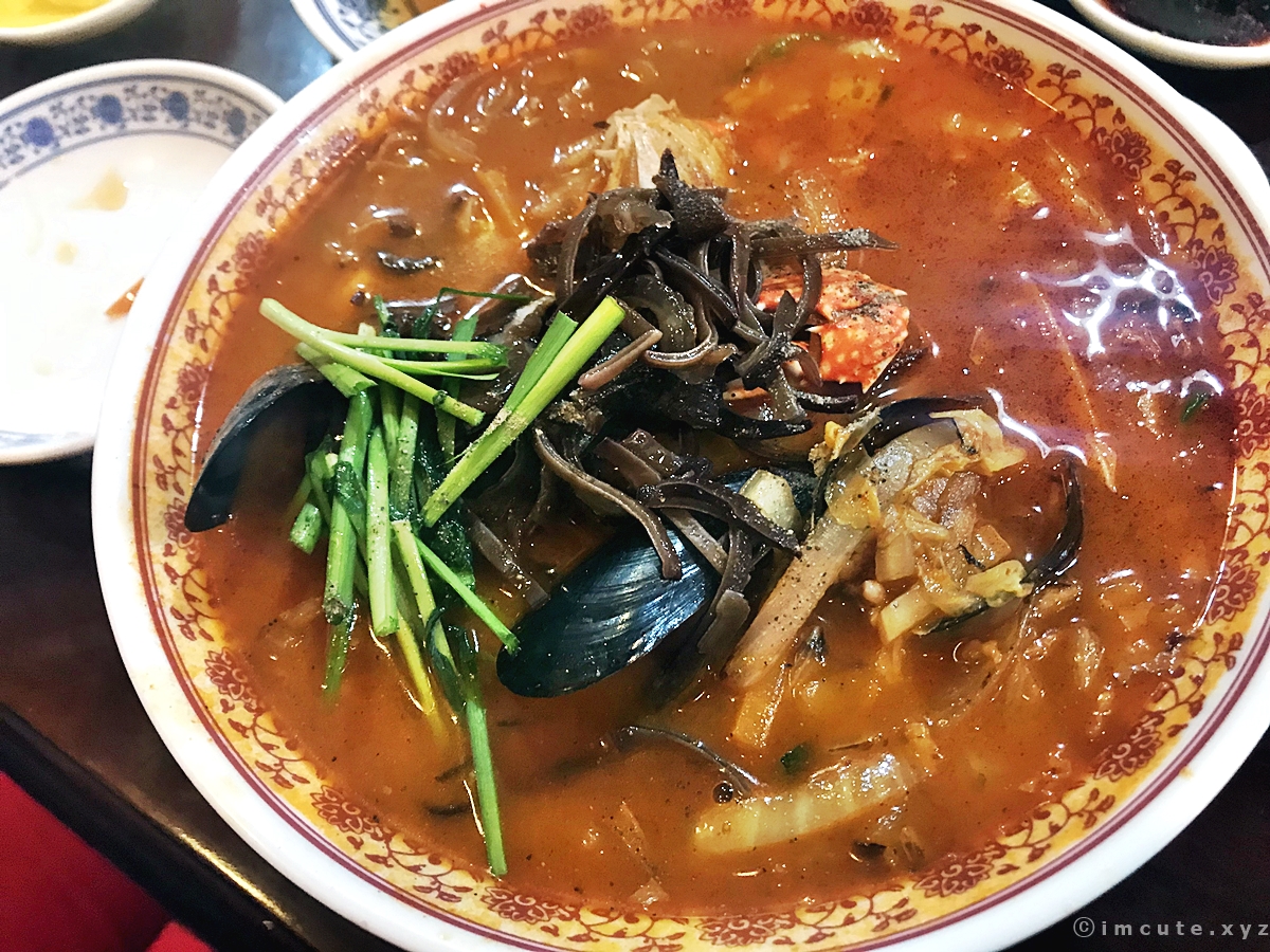면발이 두툼하니 살아있는 짬뽕! 게다가 해산물도 많이 들어있고, 일본 라멘집에 가면 자주 얹어먹는 고명 '목이버섯'까지 있는것으로 보아 퀄리티 하나만큼은 출중하네요. 게다가, 부추까지 얹어져 있으니 이거 뭐 제가 말을 다 해서 뭣합니까. 그저 엄청난 비주얼이라고밖에 설명이 안 되던걸요?