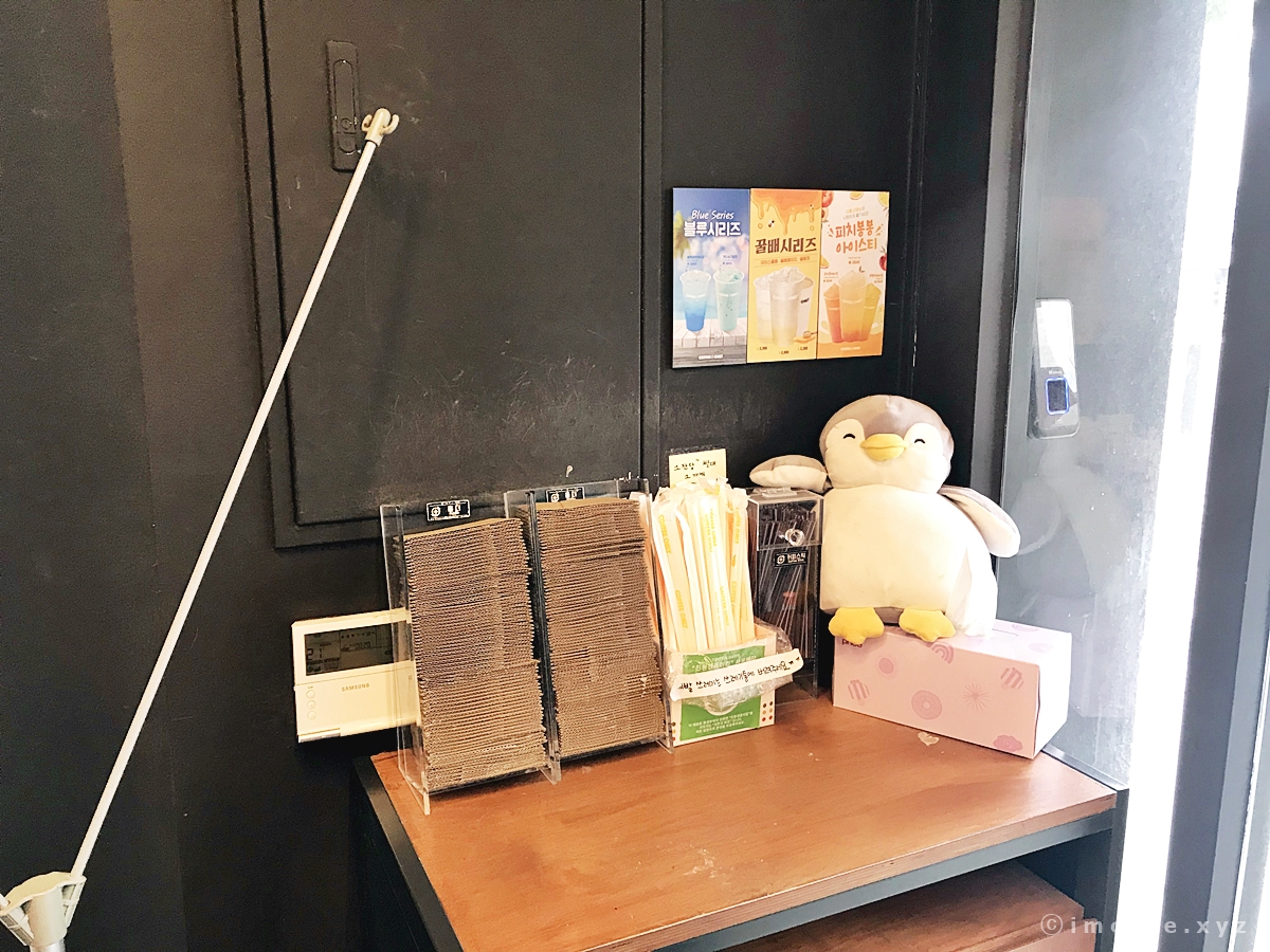 셀프로 하는것이 많아 조금 귀찮을순 있지만 픽업대에서 모든것을 다 셀프로 처리하며 인건비를 절약한 대신 카페메뉴는 굉장히 빨리 나오는 편입니다. 주문이 들어오자마자 바로 만들어 주시던데요 혼자서 이 많으 주문을 다 감당하시다니, 직원분의 손놀림도 아주 대단하십니다. 제가 그래서 바리스타를 존경하는 거고요~
