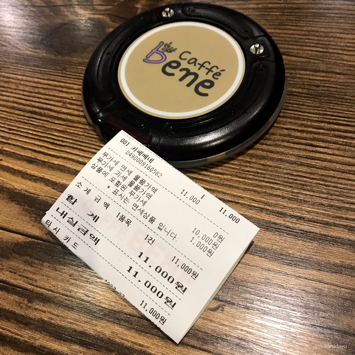 진동벨에는 옛날 글씨체가 쓰여져 있었습니다. 카페베네 딸기 눈꽃빙수의 가격은 11000원이었고요, 추억의 글씨체이네요. 저게 산돌 광수체이던가요? 아무튼, 카페베네가 처음 생길때만 해도 혁신이었는데 어느덧 여러 지점이 다 사라져서 정말 아쉬웠거든요.