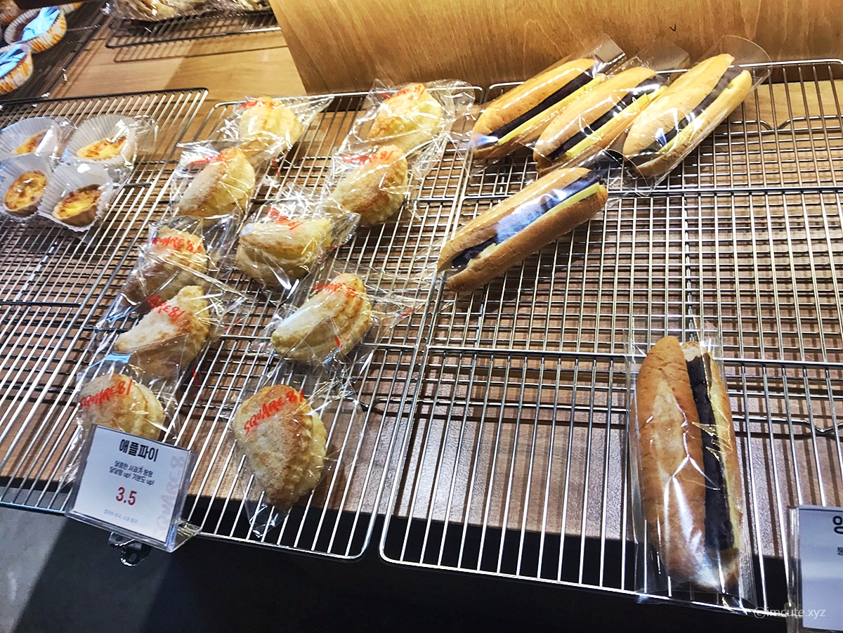 애플파이는 3500원이었고요 앙버터가 들어있는 빵도 보였습니다.