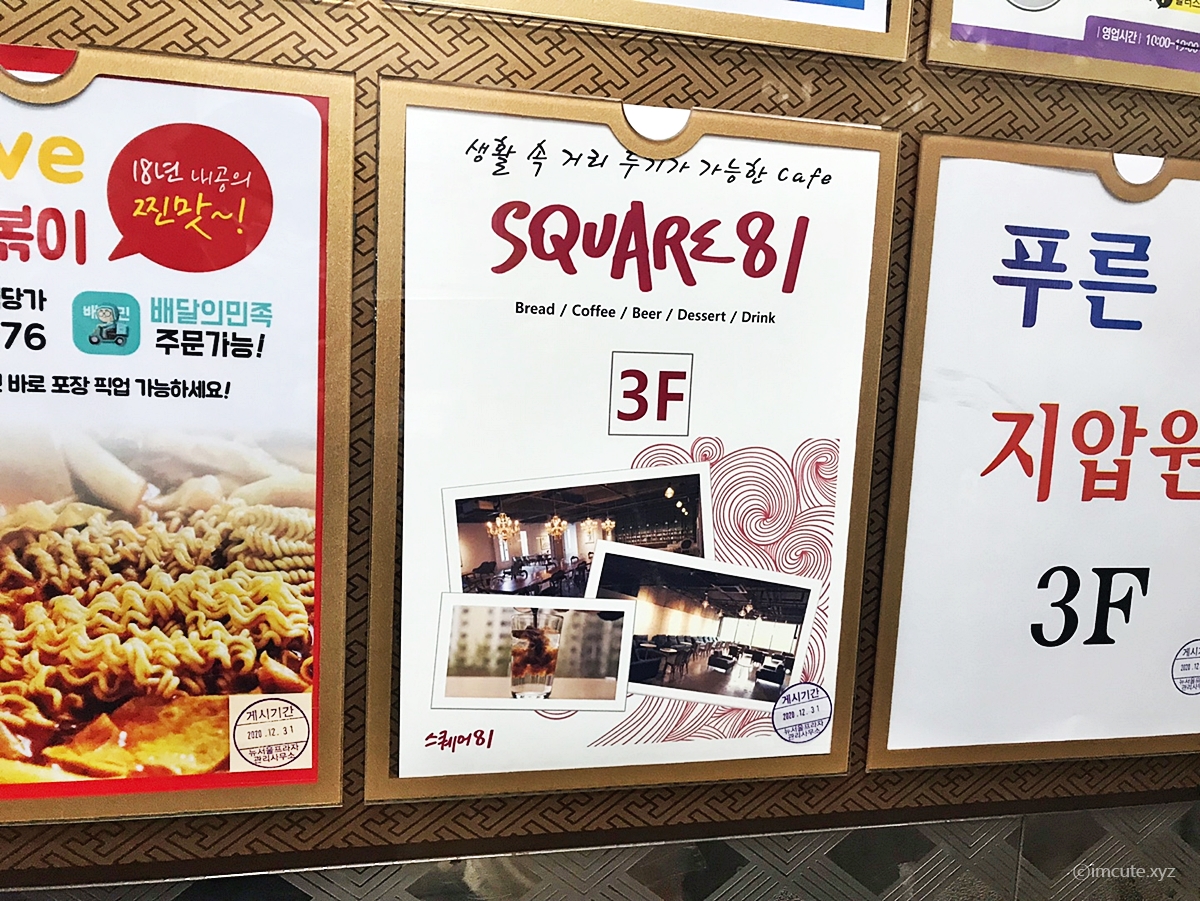 스퀘어81은 생활속 거리두기가 가능한 카페라고 표방하면서 광고를 하고 있었어요. 빵, 커피, 술, 디저트, 그리고 음료까지 다 ~~ 취급하는 이 어마무시한 비주얼?