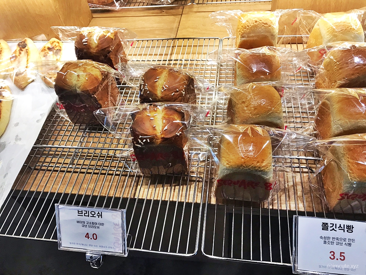 브리오쉬는 4000원이었습니다. 먹음직스러워 보이지 않나요? 그리고 일단 숙성한 반죽으로 만든 쫄깃한 큐브 식빵이었고요 브리오쉬는 버터의 고소함이 더해져 있는데다가 큐브 모양이라 사이즈가 큽니다.