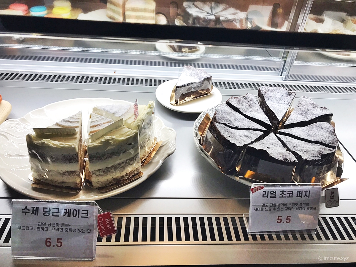 디저트 종류입니다. 수제 당근케이크는 6500원, 리얼 초코 퍼지 케이크는 5500원이었습니다.