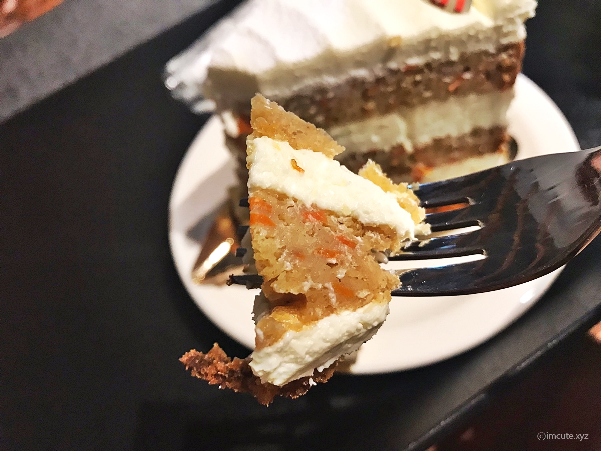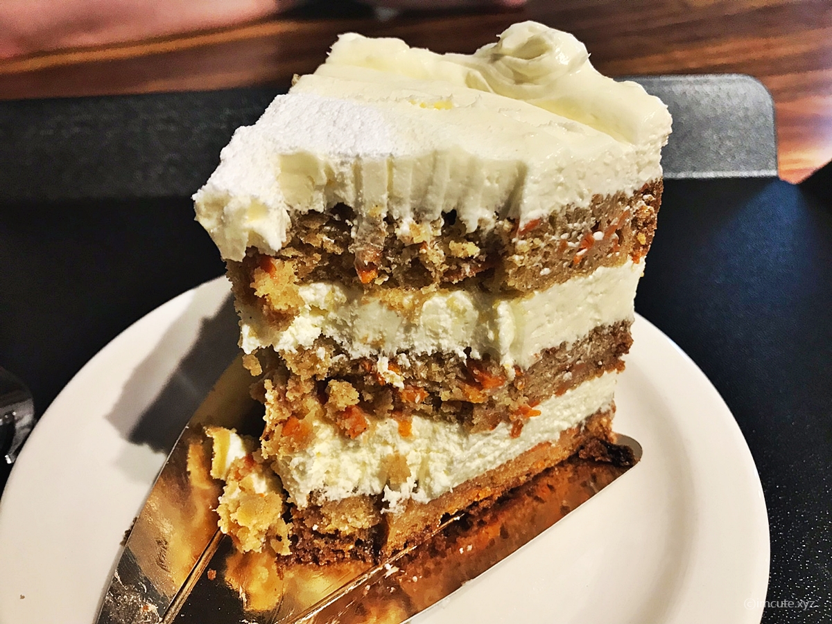 우리는 당근케이크랑, 아이스 아메리카노 3개를 시켰어요. 일단 분위기만으로도 흡족했는데 디저트도 되게 이쁘게 잘 나오죠? 컵이랑, 플레이팅 모두 다 마음에 들고 케이크 사이즈도 뚜둥하다는 것이 좋았어요. 아참, 아까 보셨다시피 빵공장형 카페여서 빵도 먹고싶긴 한데 이미 밥을 배부르게 먹고 온터라 밥까지 다 못시킨건 심히 아쉽더라고요. 다음엔 무조건 빵이랑 먹어볼겁니다. 브런치 식으로다가 말이죠.