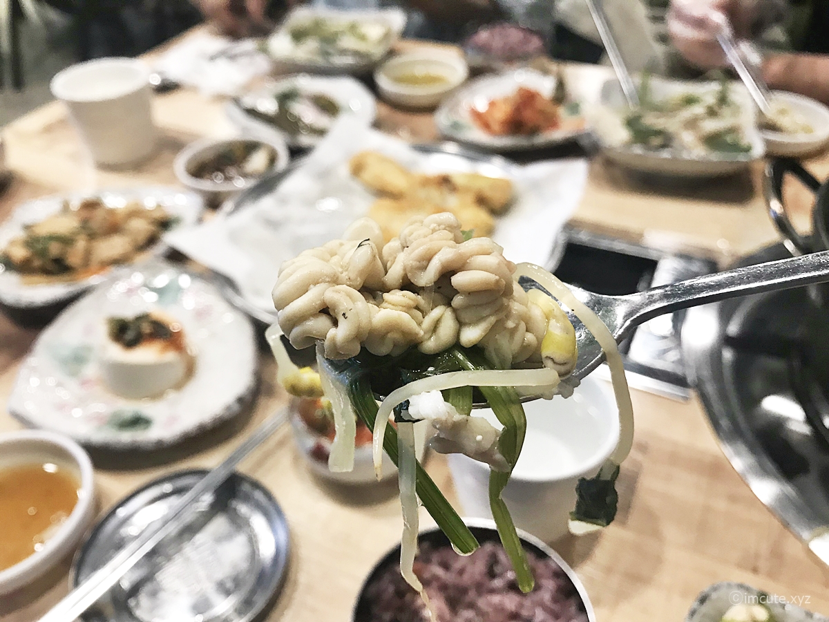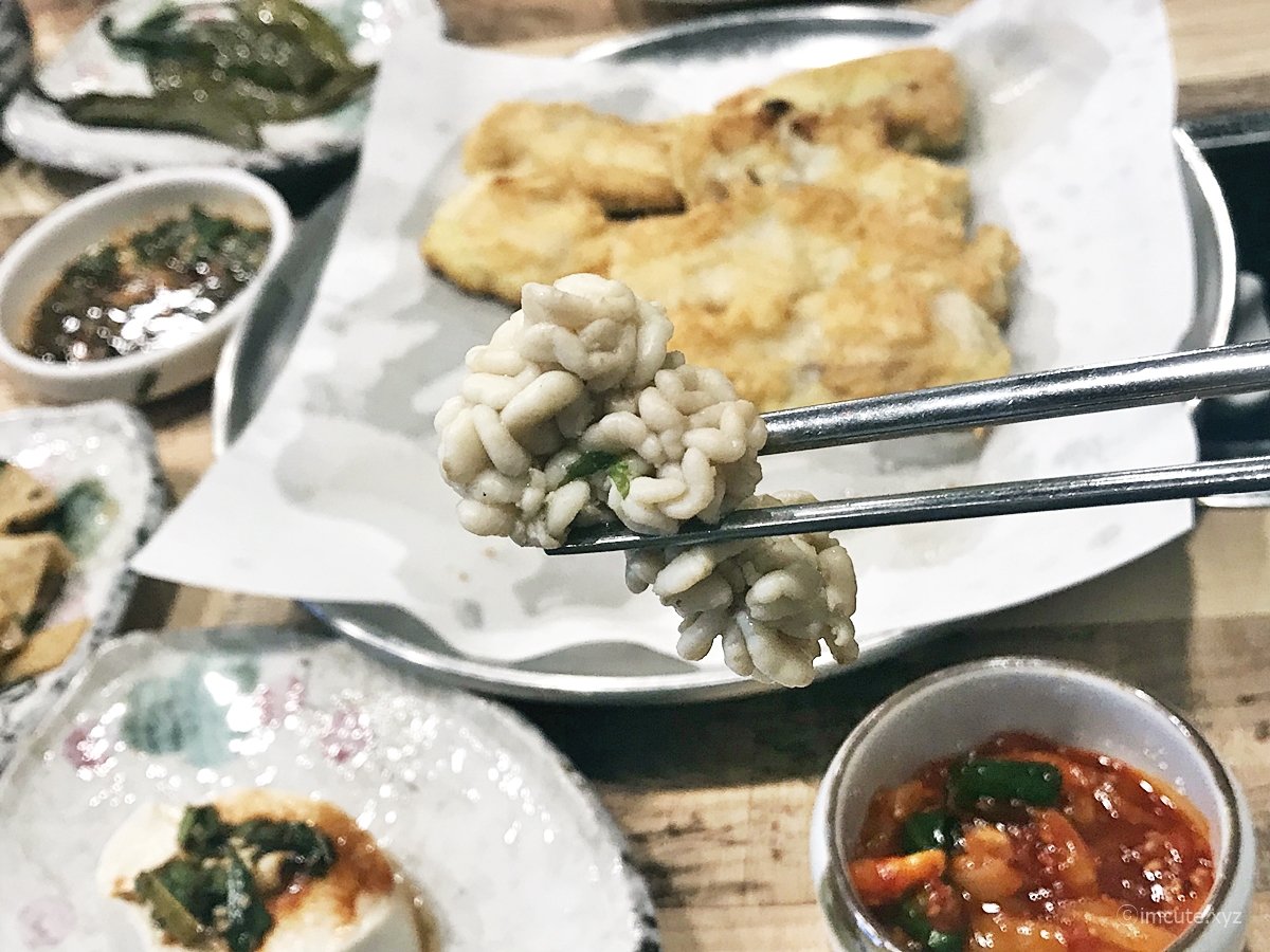아참, 여기 밑반찬이 맛있다고 했잖아요. 오징어젓갈이 너무 맛있어서 저 혼자 다 먹어버린거 같네요. 가족들이 저 먹으라고 아예 제 쪽에 이걸 치워주심.