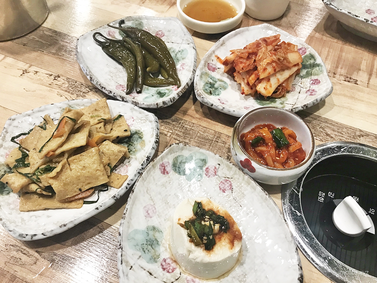 밑반찬으론 이렇게 나오는데요 어묵과 순두부 그리고 젓갈, 김치, 고추장아찌였습니다. 뭐 하나 빠질 것 없이 집에서 먹는 그 맛을 그대로 연출해 주었습니다.