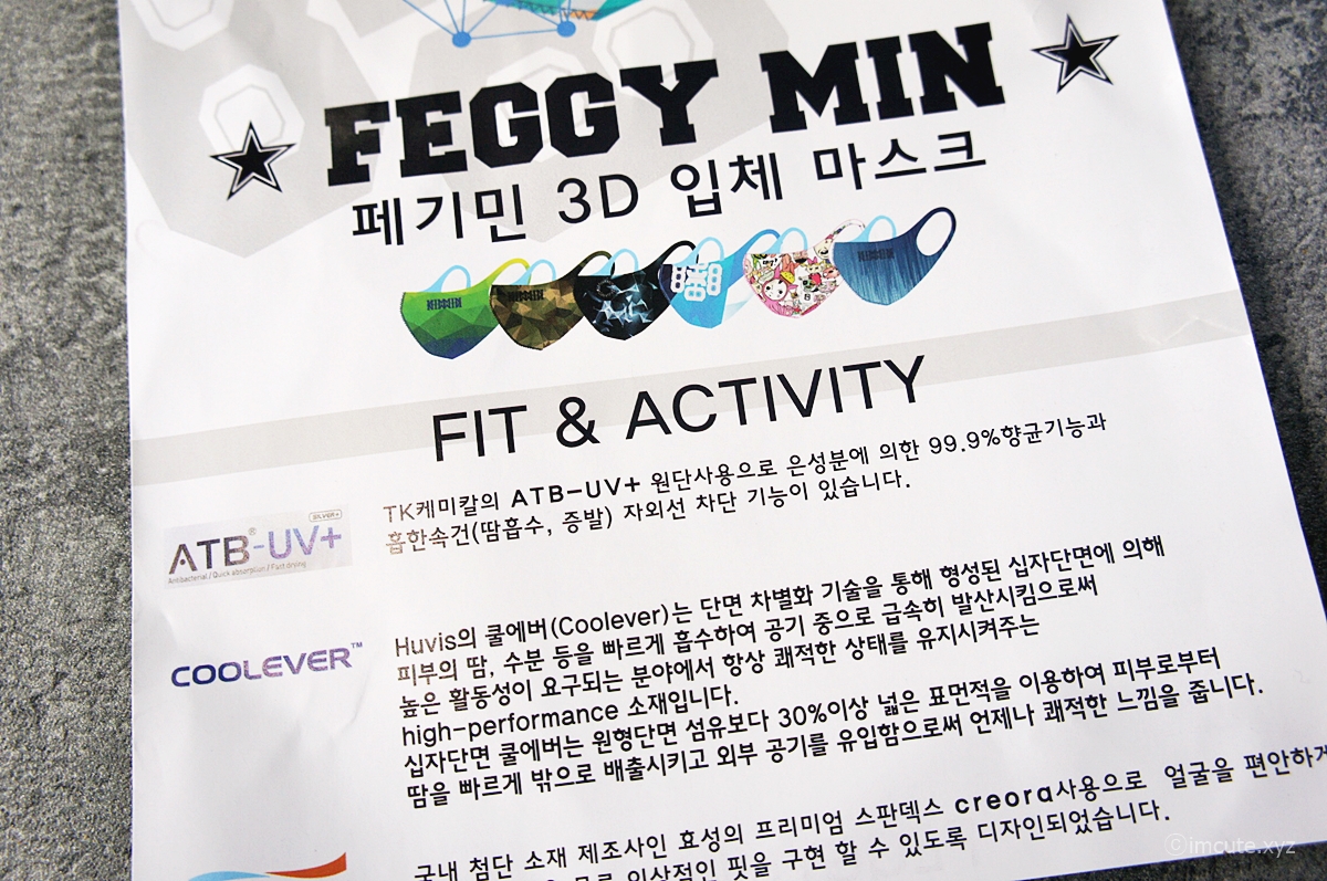 COOLEVER이라는 것에도 주목해봅니다. Huvis의 쿨에버는 단면을 차별화했다는데요, 단면 차별화기술에서 나온 십자단면이 얼굴에 닿는 부분에서 분비되는 물질인 땀이나 수분등의 분비물을 빠르게 흡수한다고 하네요. 그리고 마스크에서 공기중으로 이 수분을 급속히 발산시켜준다고 하니, 지금같이 그냥 조금만 움직여도 땀이 뚝뚝 나오는 여름에는 쾌적한 상태를 유지시켜주는 이 쿨에버 기능이 필수적일듯 합니다.