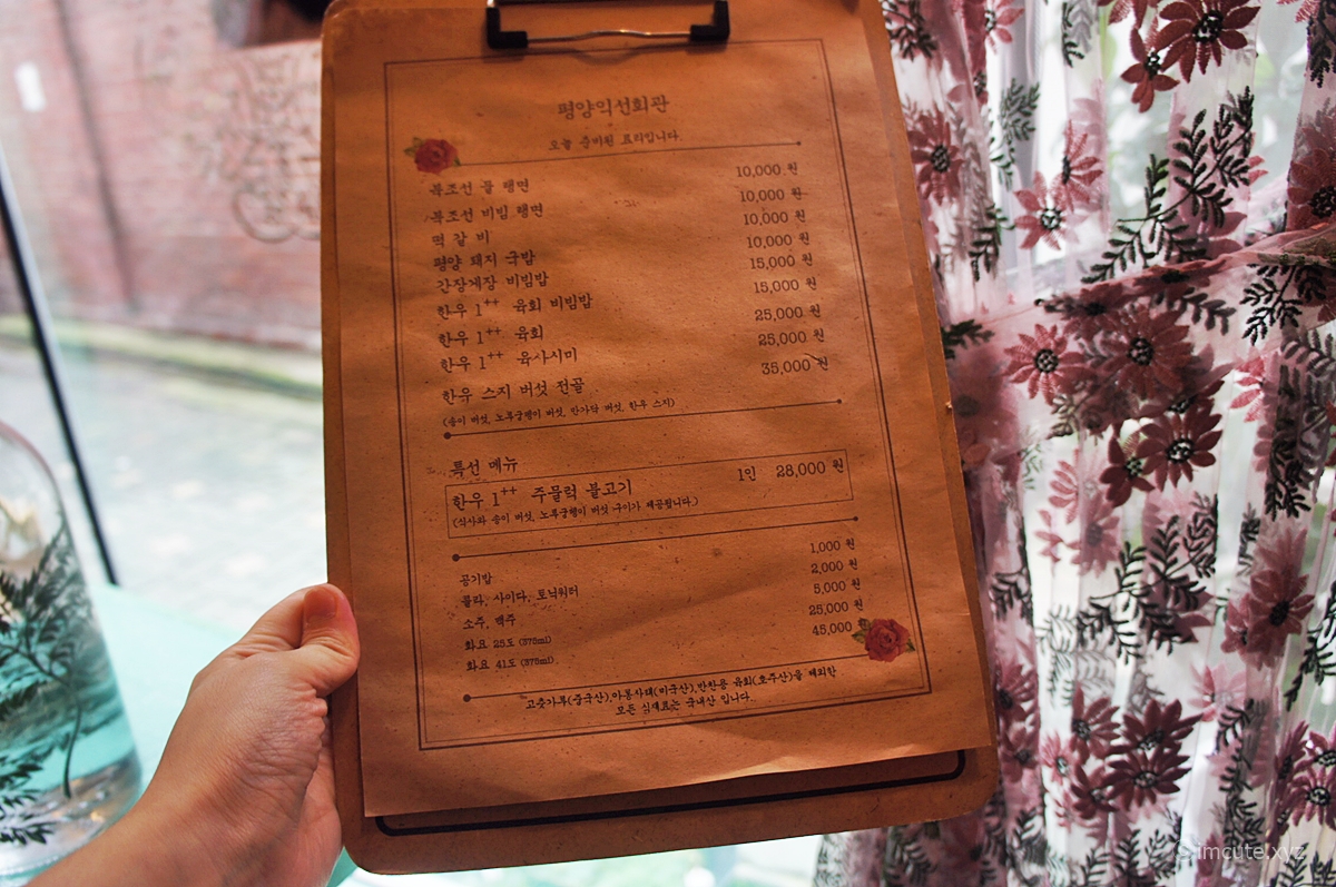 우리는 북조선 물랭면은 꼭 먹어보기로 했습니다. 북조선 비빔랭면, 떡갈비, 평양 돼지국밥, 간장게장 비빔밥도 맛나 보였습니다. 한우를 그것도 1++등급으로 사용한 육회비빔밥, 육회, 육사시미가 있었고요 특선메뉴로 즐기는것도 괜찮겠다 싶었어요. 한우 1++주물럭 불고기에는 식사와 송이버섯 그리고 노루궁뎅이버섯 구이가 제공된다니 너무 대단합니다.